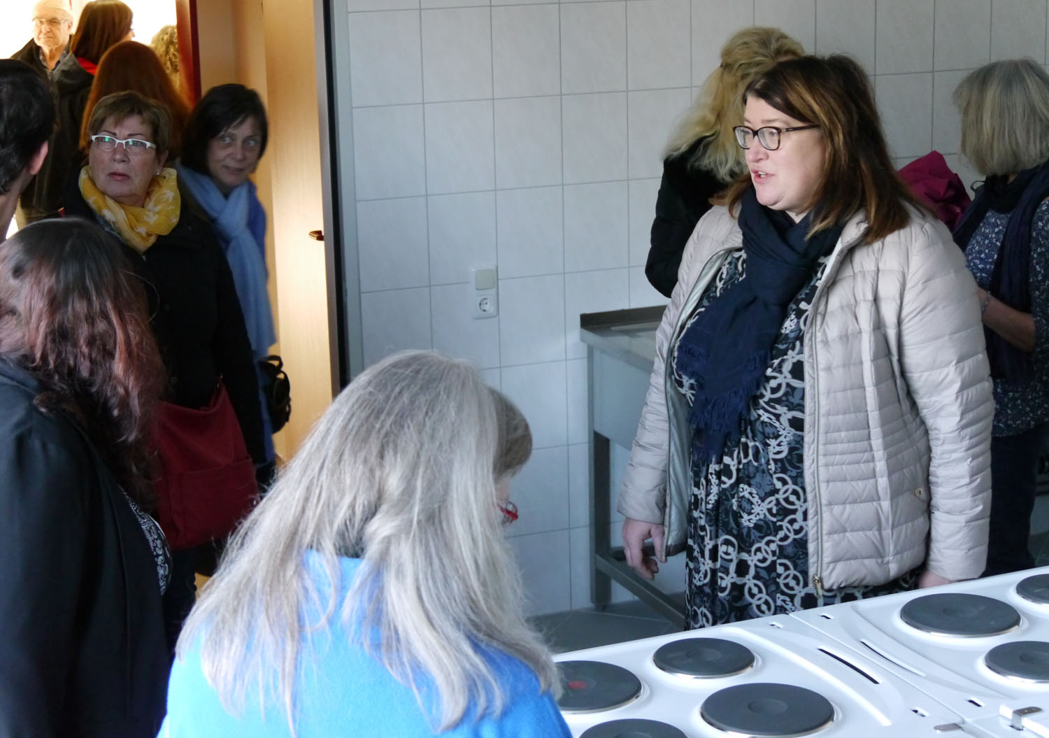 Besichtigung des fast bezugsfertigen Übergangswohnheims an der Kapitän-Dallmann-Straße: Senatorin Stahmann mit Vertreterinnen und Vertretern aus dem Beirat Blumenthal sowie der Willkommensinitiative