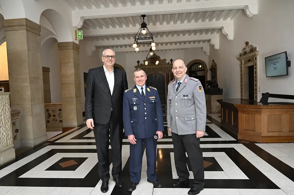 Bürgermeister Andreas Bovenschulte mit Oberst Dorfmüller und Oberst Timm.