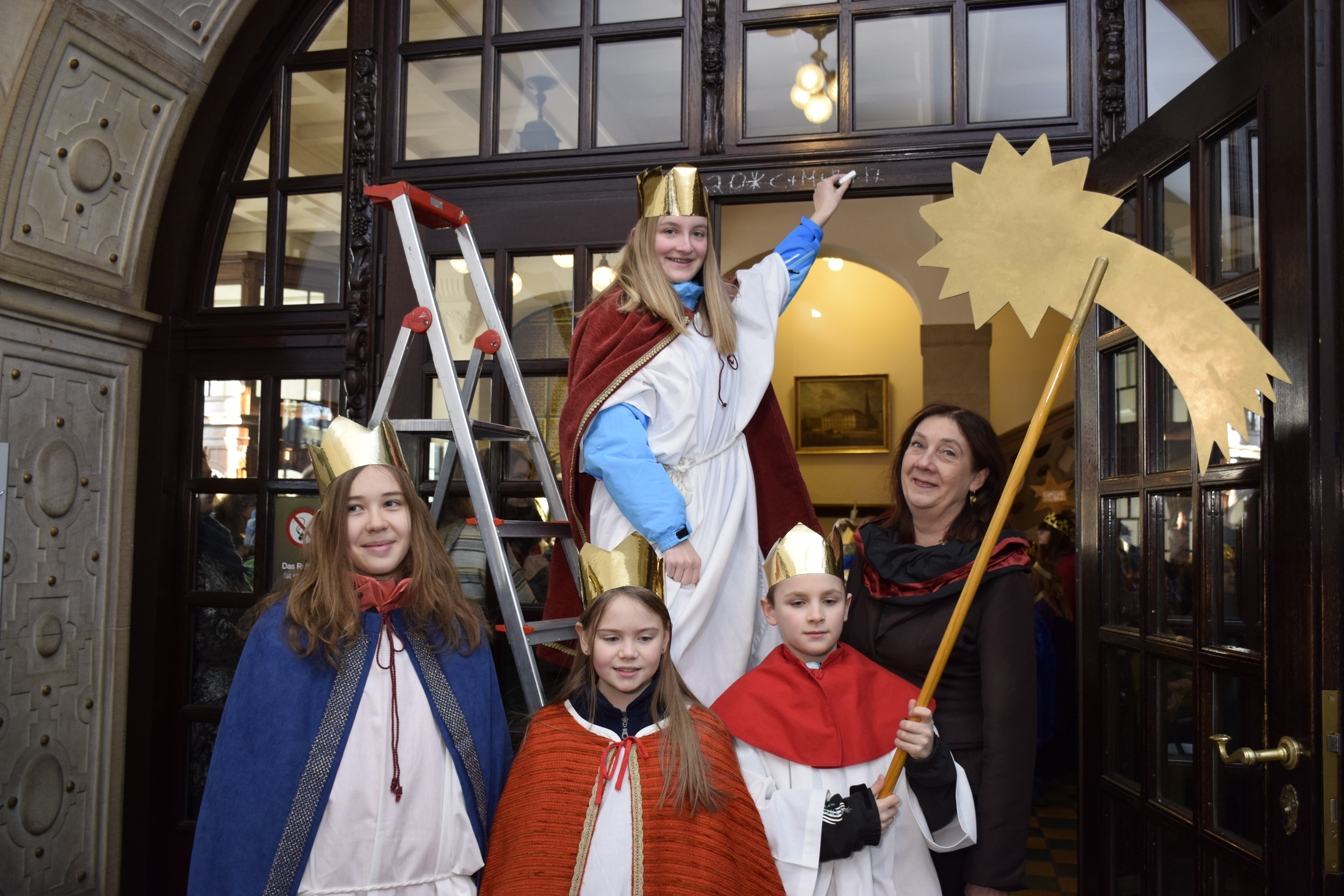 Bürgermeisterin Karoline Linnert mit Sternsingern im Rathaus