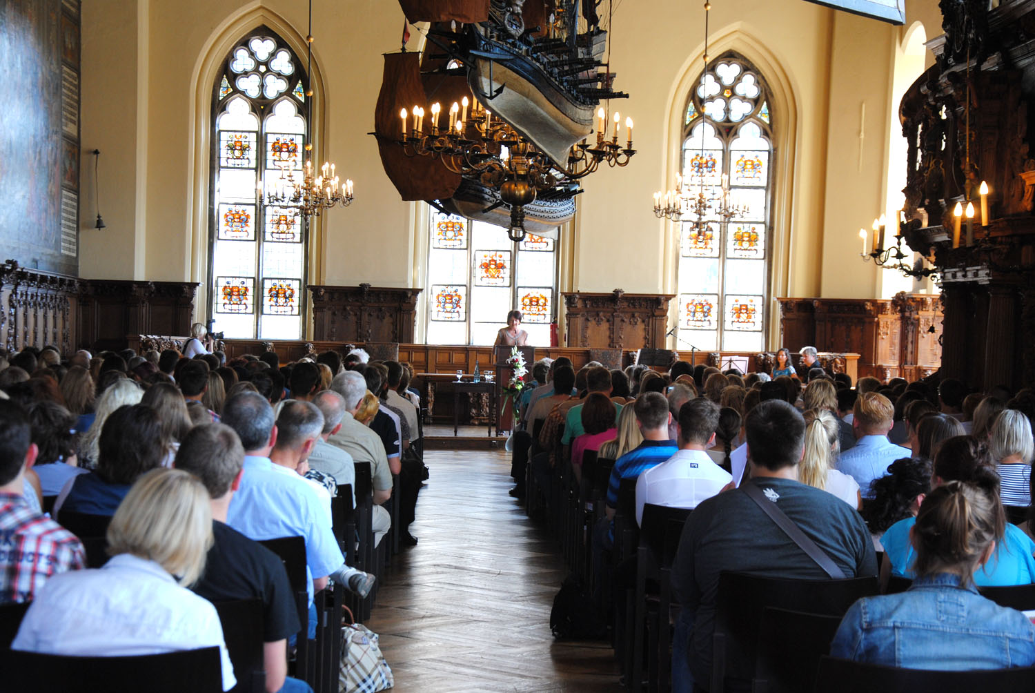 Bürgermeisterin Linnert begrüßt die neuen Auszubildenden in der Oberen Rathaushalle