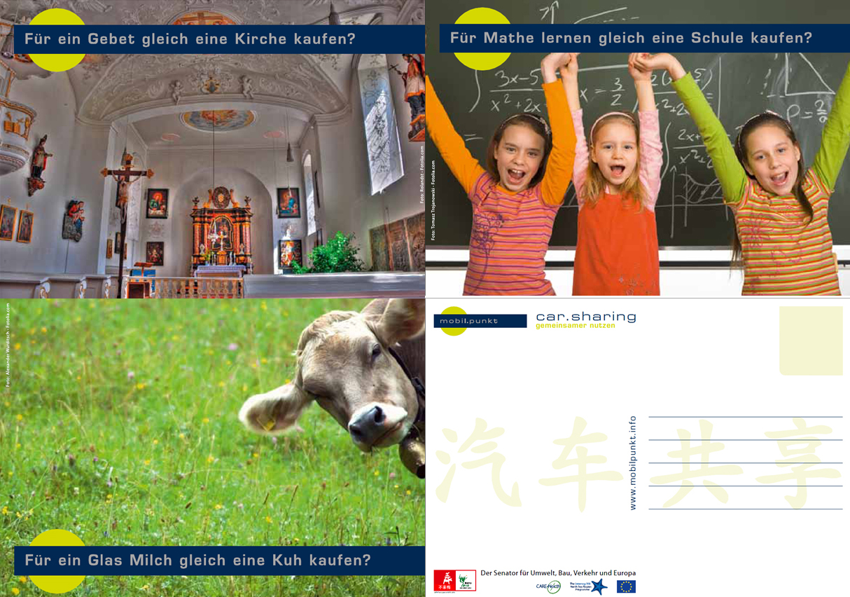 Car-Sharing: gemeinsamer Nutzen – das ist eine Botschaft von UniCards, die zu Beginn der EXPO in Lokalen in den Bremer Stadtquartieren ausliegen.