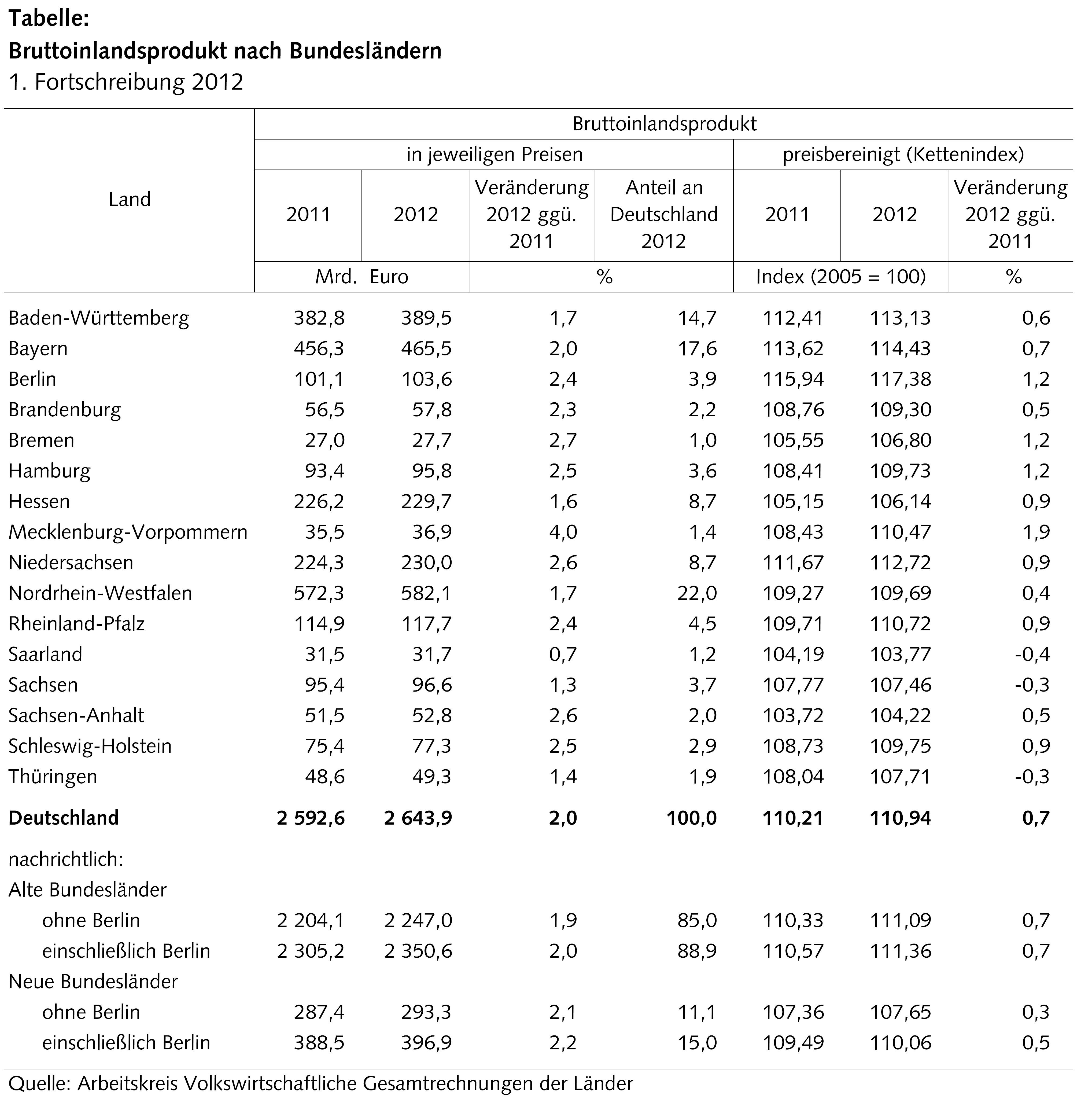 Das Bruttoinlandsprodukt im Land Bremen im Jahr 2012 nominal um 2,7 Prozent / Grafik: Statistische Landesamt