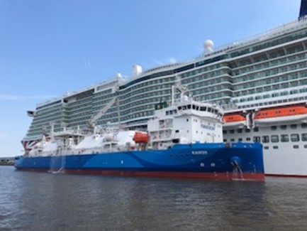 Der "IONA" wird von einem Spezialschiff befüllt Foto: Hanstestadt Bremisches Hafenamt