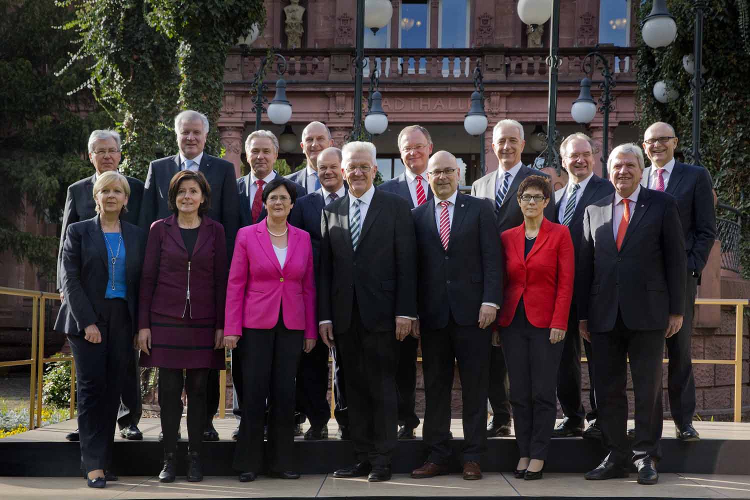 Der Präsident des Senats, Bürgermeister Jens Böhrnsen, mit den Regierungschefinnen und Regierungschefs der Länder (2. Reihe, L.)