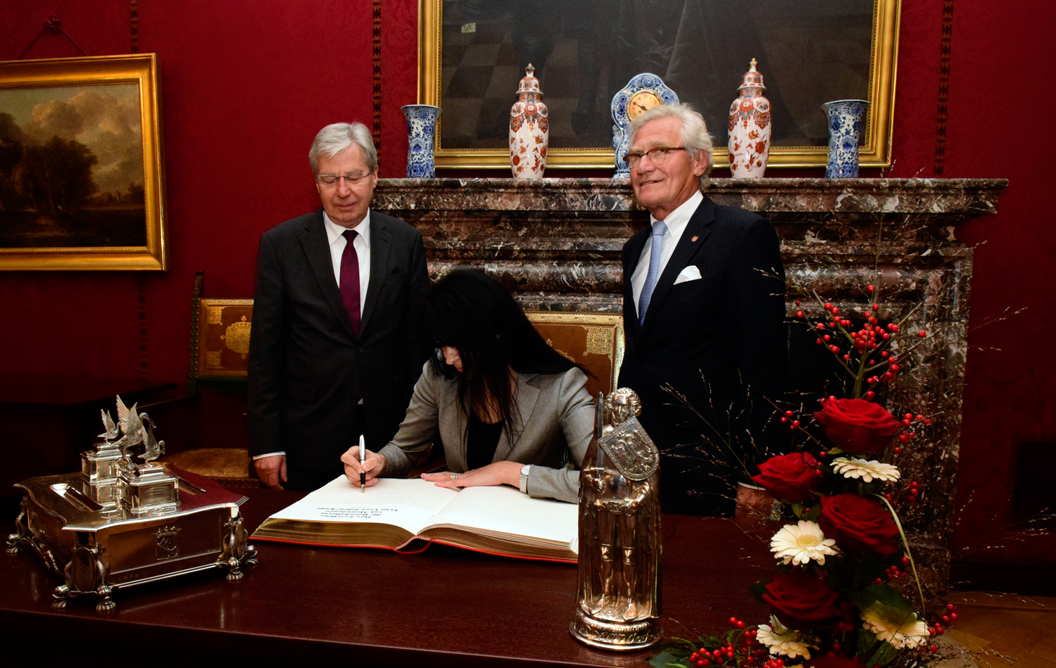 Die Botschafterin von Montenegro, Vera Joličić-Kuliš, trug sich in das Goldene Buch ein.