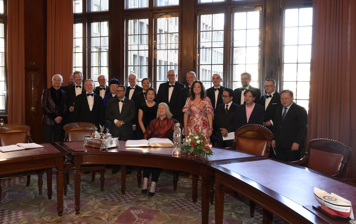 Die diplomatischen Gäste des Stiftungsfestes des Ostasiatischen Vereins im Senatssaal beim Eintrag in das Goldene Buch. Foto: Senatspressestelle
