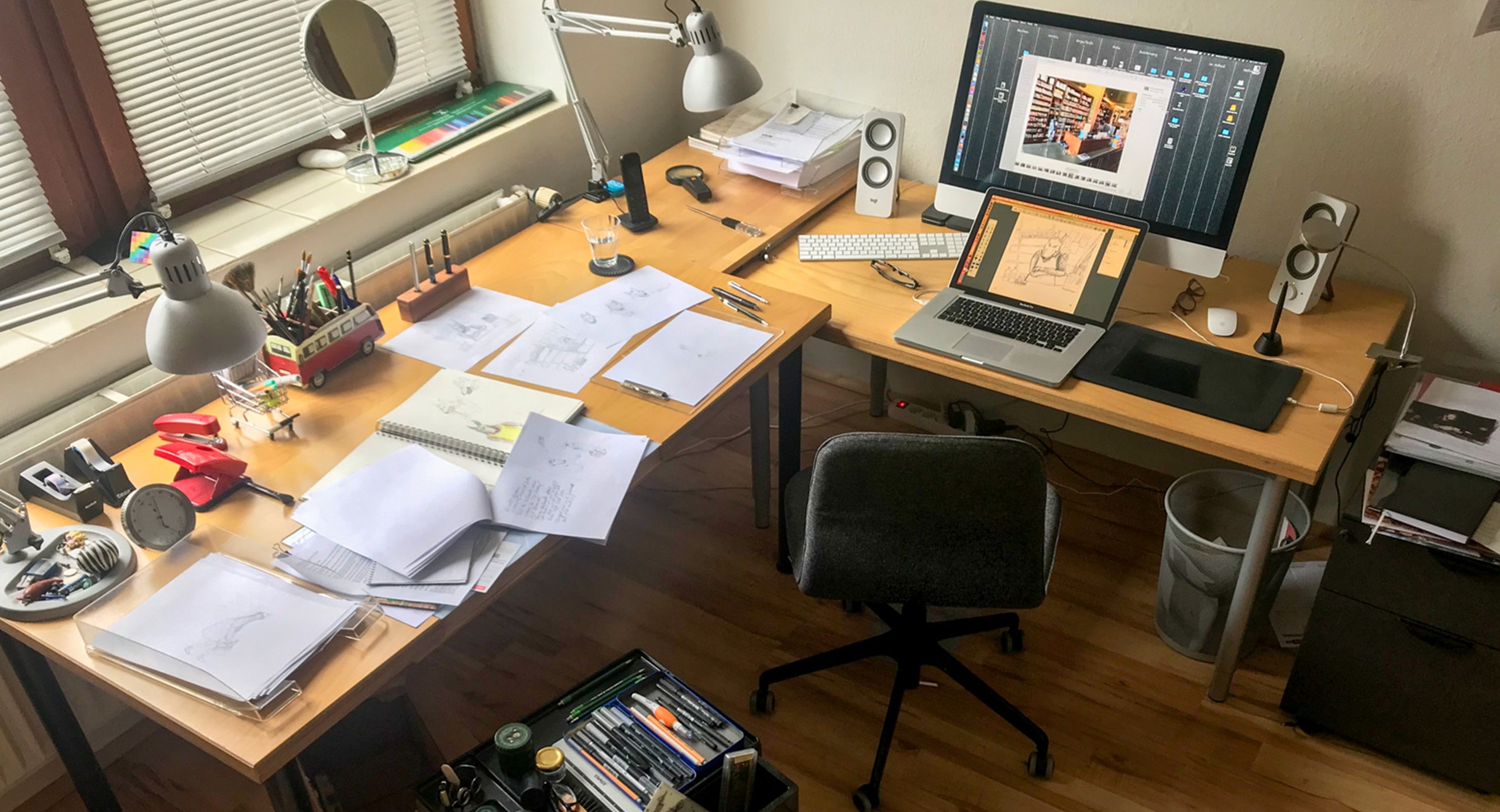 Die Zeichnungen entstehen im Zusammenspiel von analoger und digitaler Technik. Foto: Eckhard Möller