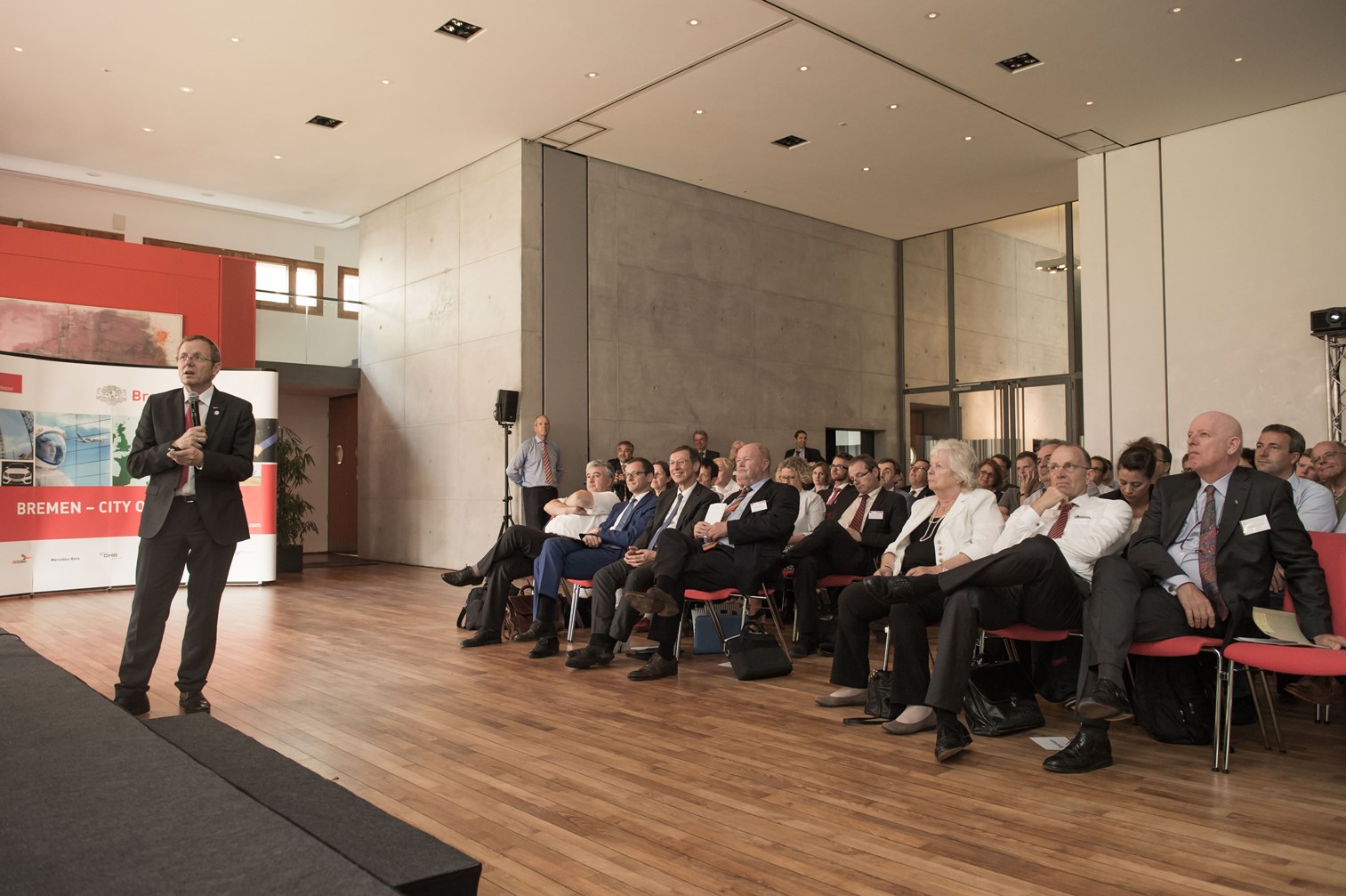 DLR-Chef Wörner bei seinem Vortrag in der Bremer Landesvertretung