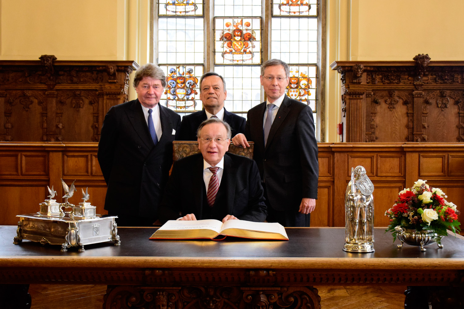 Eintrag in das Goldene Buch: Botschafter José Antonio Meier Espinosa, Honorarkonsul Hans-Joachim Schnitger, Generalkonsul Carlos Manuel Roman Heredia, Bürgermeister Dr. Carsten Sieling
