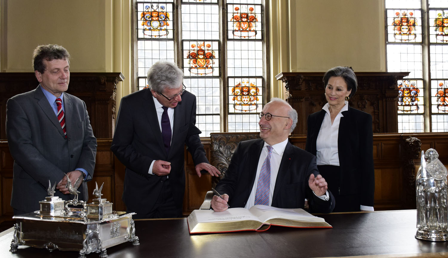 Eintrag in das Goldene Buch: Dr. Philippe Wellnitz, Direktor des Institut Français Bremen, Bürgermeister Jens Böhrnsen, Botschafter Philippe Etienne, Honorarkonsulin Dominique Wehrmann