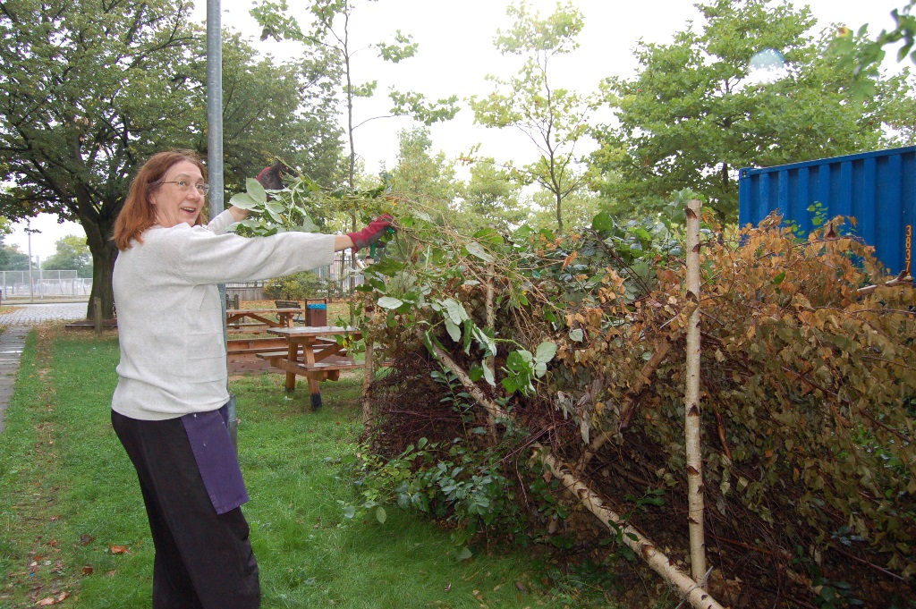 Finanzsenatorin Karoline Linnert lichtete das Brombeerdickicht