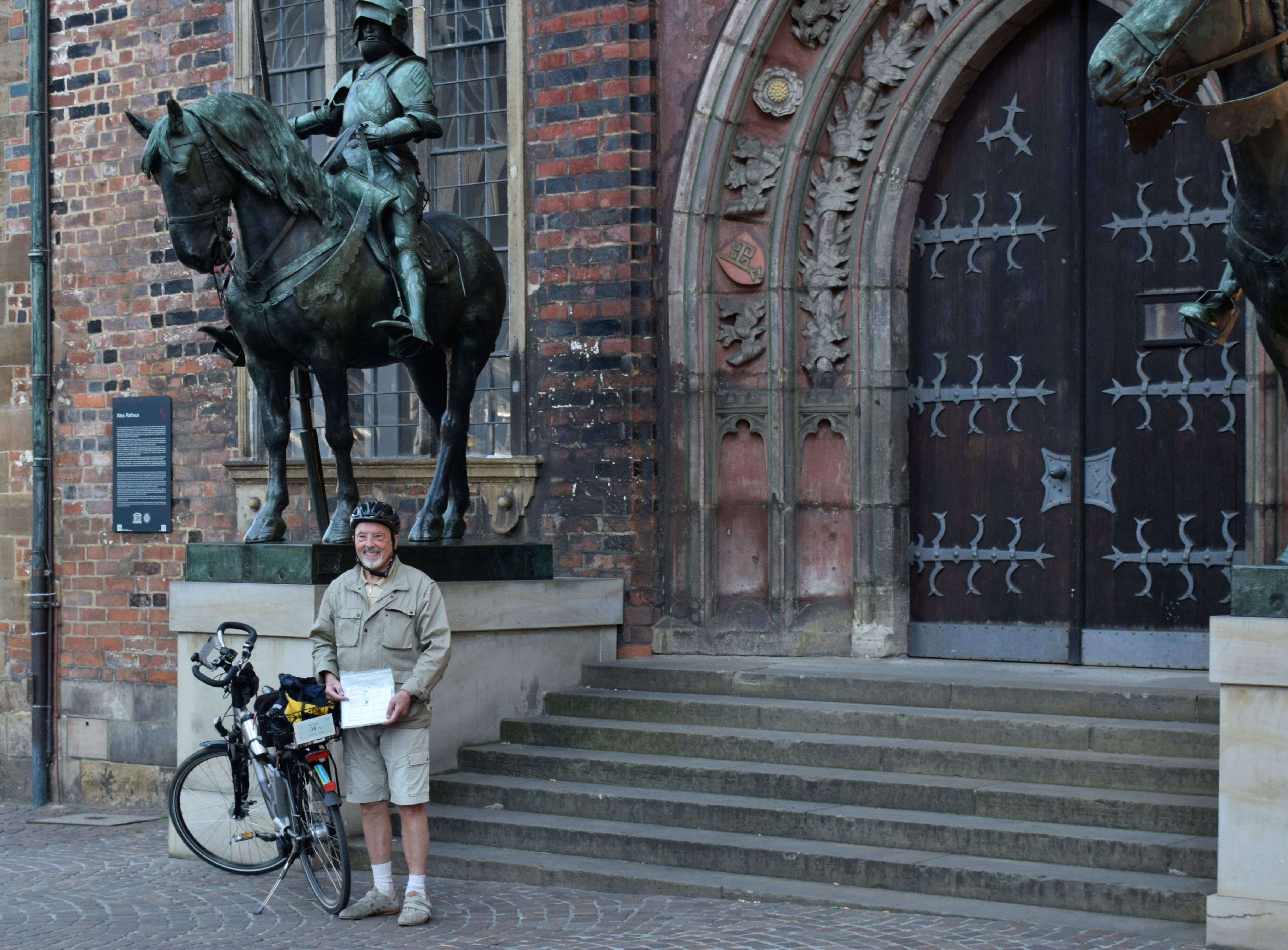 Günter Schulte freut sich: Gerade hat er im Rathaus seinen letzten Stempel für das Weser-Radweg-Diplom erhalten