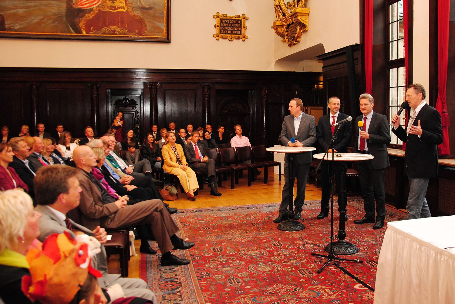 Im Gespräch: (von links) David Koopmann, Hermann Schünemann, Dr. Stefan Offenhäuser und Dirk Böhling