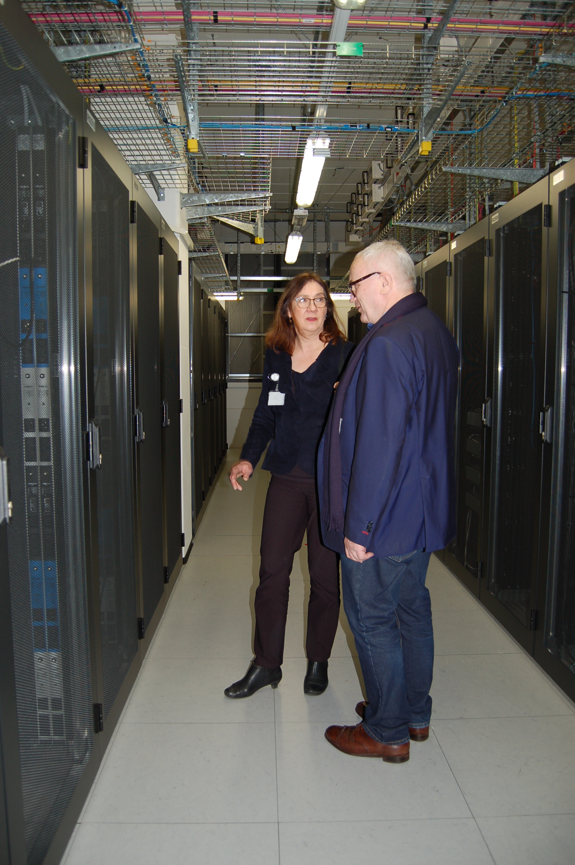 Karoline Linnert und Henning Lühr in einer der vier Herzkammern des Rechenzentrums