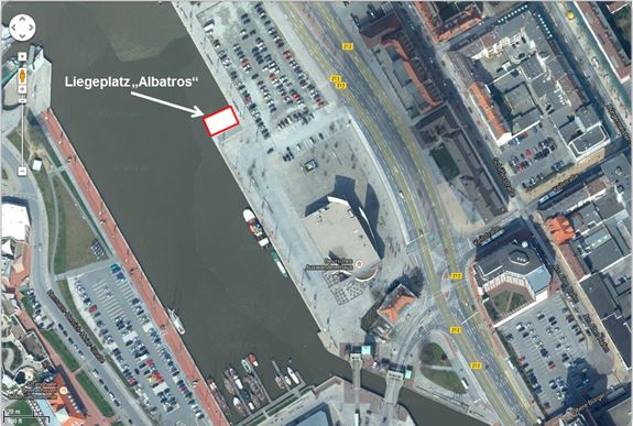 Liegeplatz der Albatros am Neuen Hafen, Oststeite (zum Vergößern bitte anklicken)