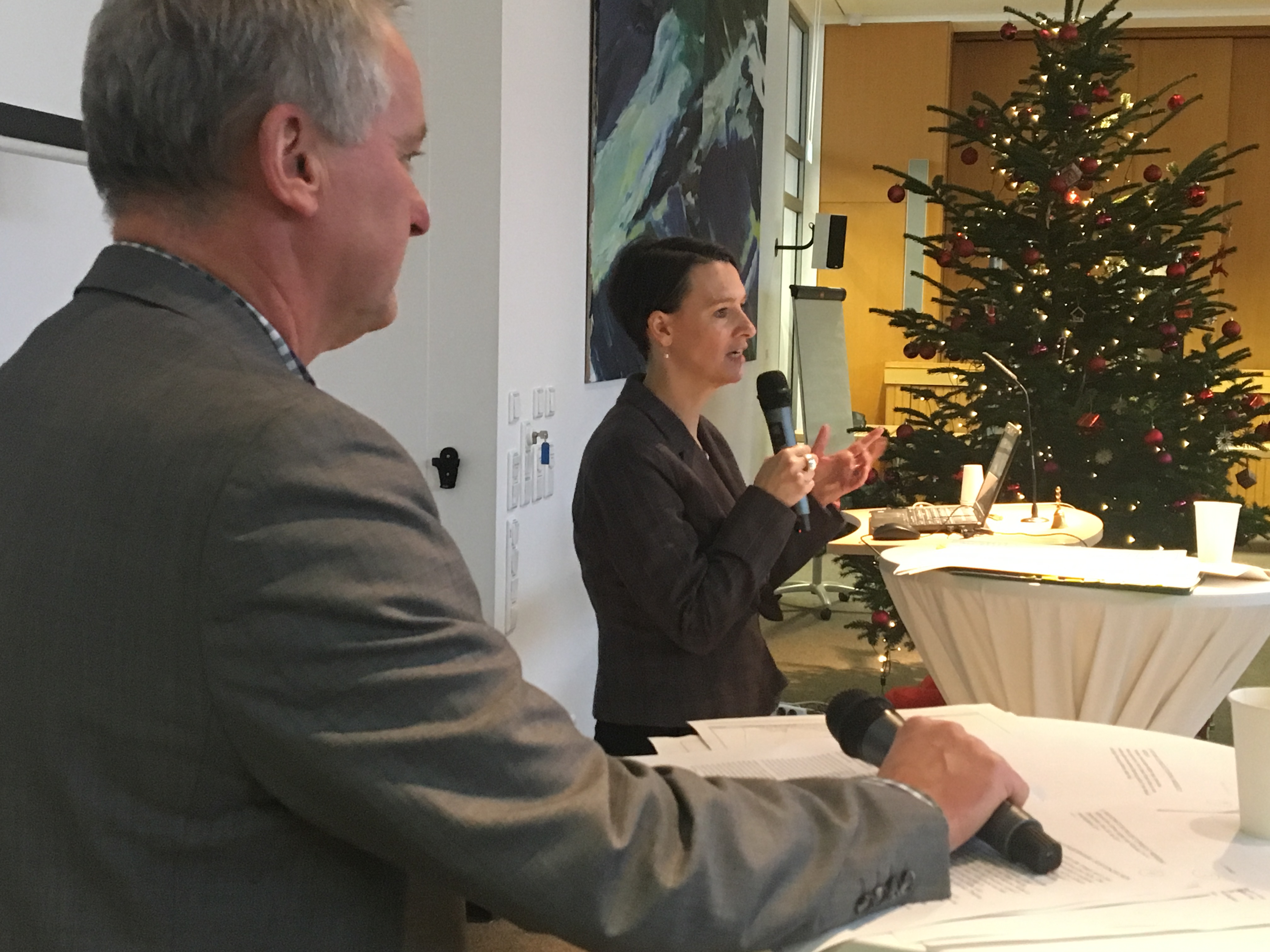Oberschulen weiterentwickeln: Senatorin Claudia Bogedan im Gespräch mit Projektmanager Lutz Liffers (im Vordergrund)