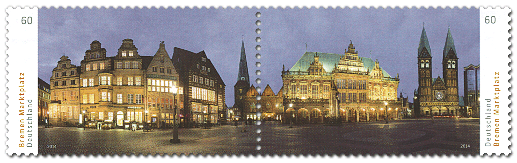 Heute erschienen: Briefmarke "Bremen Marktplatz" aus der Serie "Deutschlands schönste Panoramen". Grafik: Stefan Klein und Olaf Neumann, Iserlohn. Motiv: © Foto: Maren Arndt