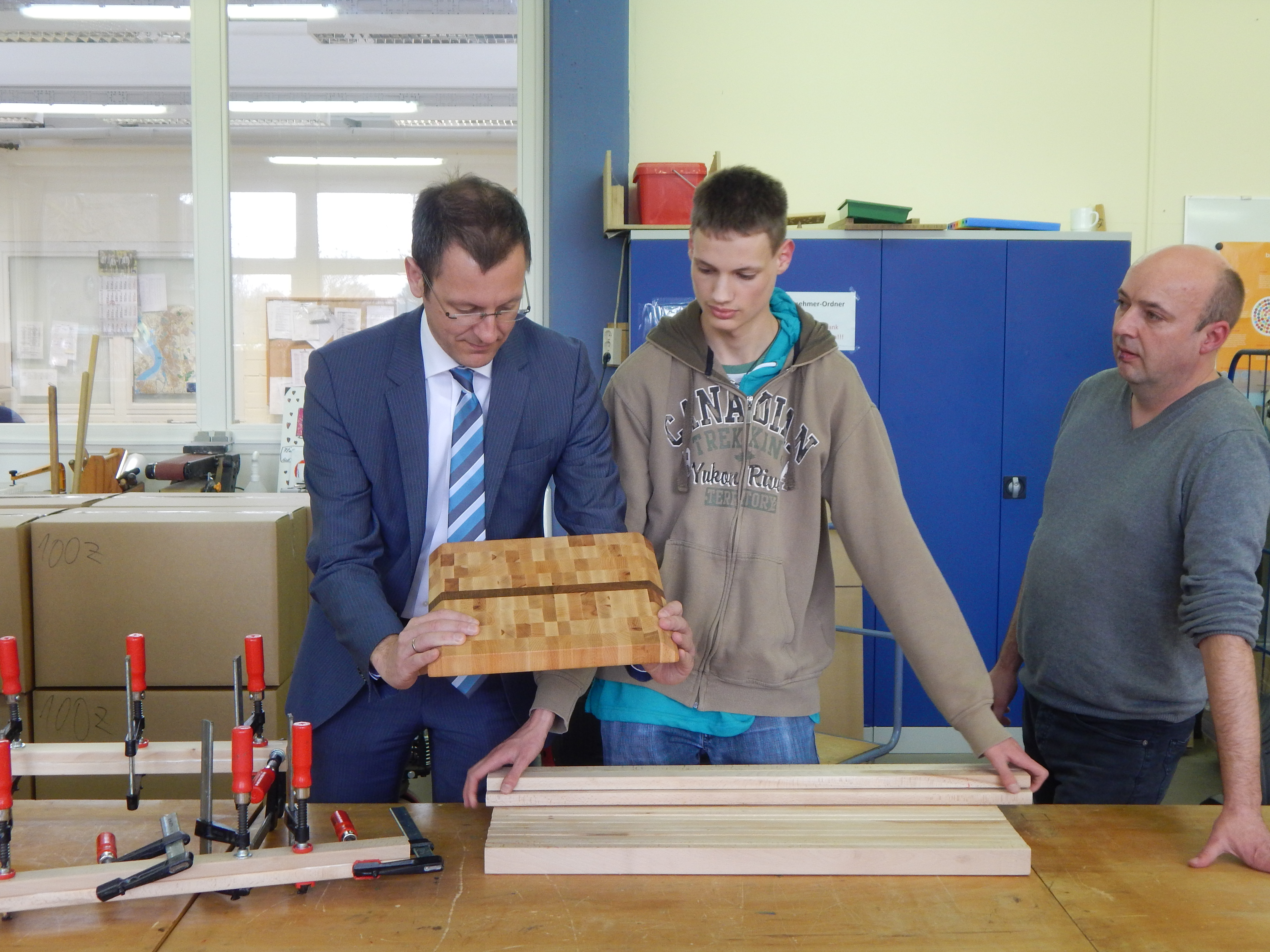 Senator Martin Günthner erhält Einblick in die Holzabteilung der Elbe-Weser-Werkstätten