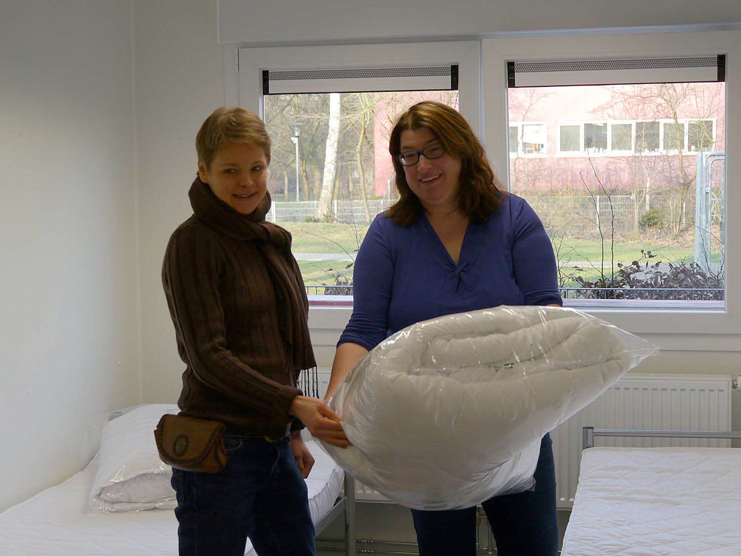 Senatorin Anja Stahmann besichtigt mit Katharina Brachmann (Innere Mission) die Einrichtung des neuen Übergangswohnheims