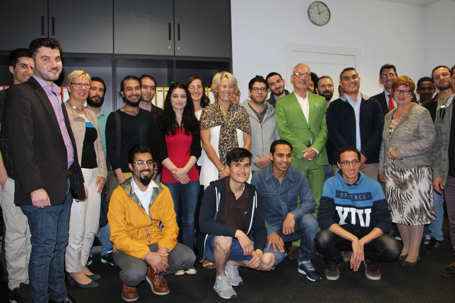 Senatorin mit Teilnehmerinnen und Teilnehmern des IN-Touch-Programms und Vertreterinnen und Vertretern der Hochschulen