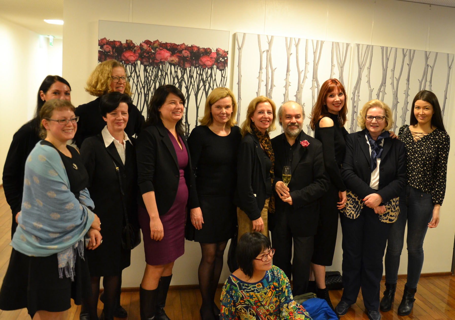 Staatsrätin Hiller (5.v.l.), Kuratorin von Vietinghoff-Scheel (2.v.r.) mit den Künstlerinnen und Künstlern