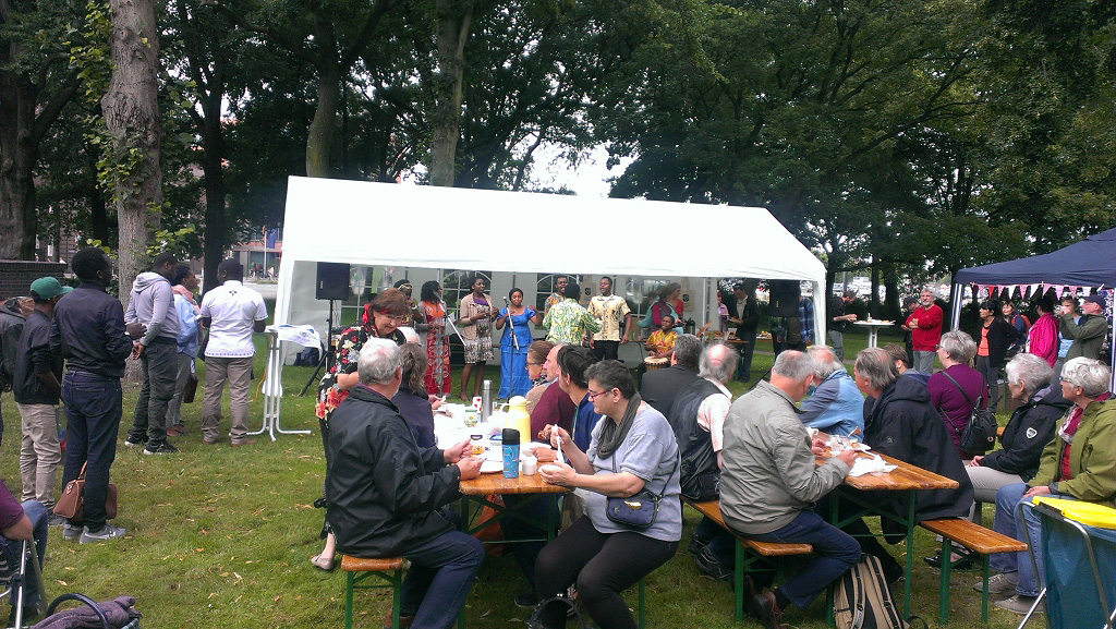 Teilnehmer der Initiative "Nelson-Mandela Park" feiern gemeinsam im Park