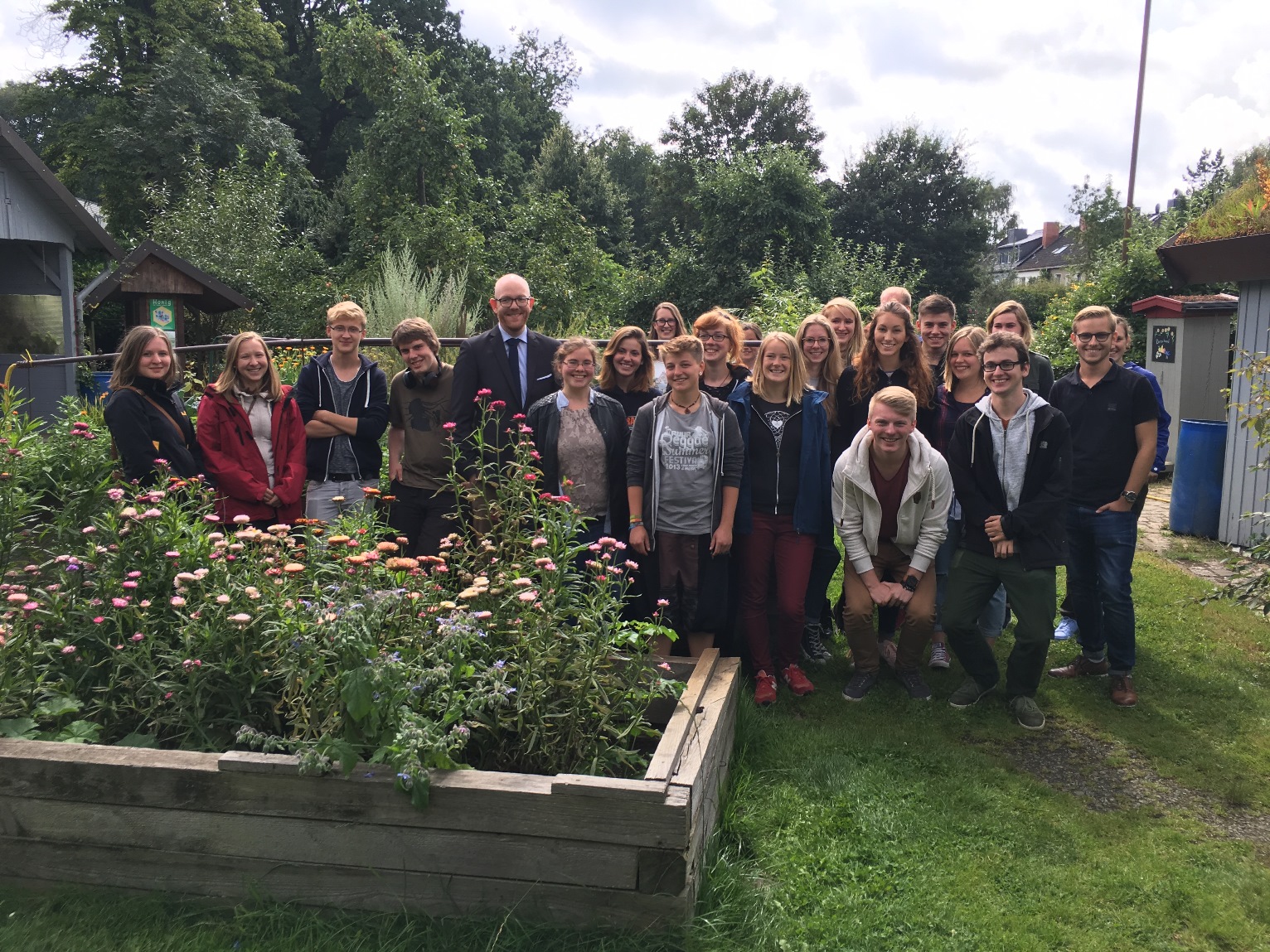 Umweltstaatsrat Ronny Meyer mit den Jugendlichen vom FÖJ
