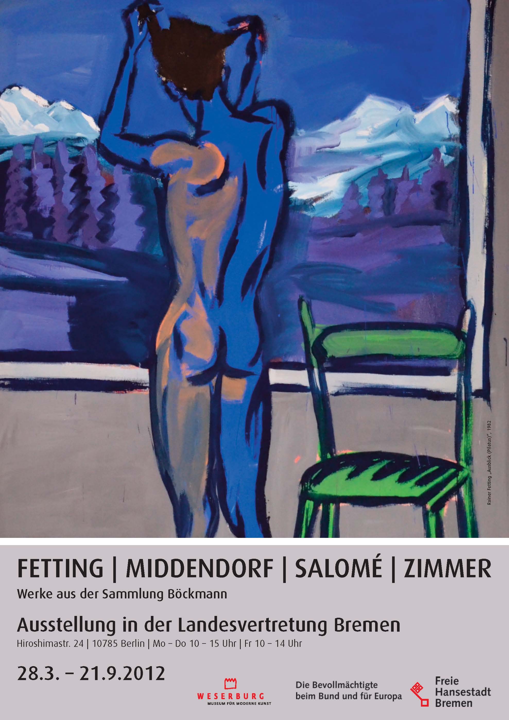 Umwerfendes Blau – das Plakat zur Ausstellung zeigt das Werk „Ausblick (Pilatus)“ von Rainer Fetting aus dem Jahr 1982