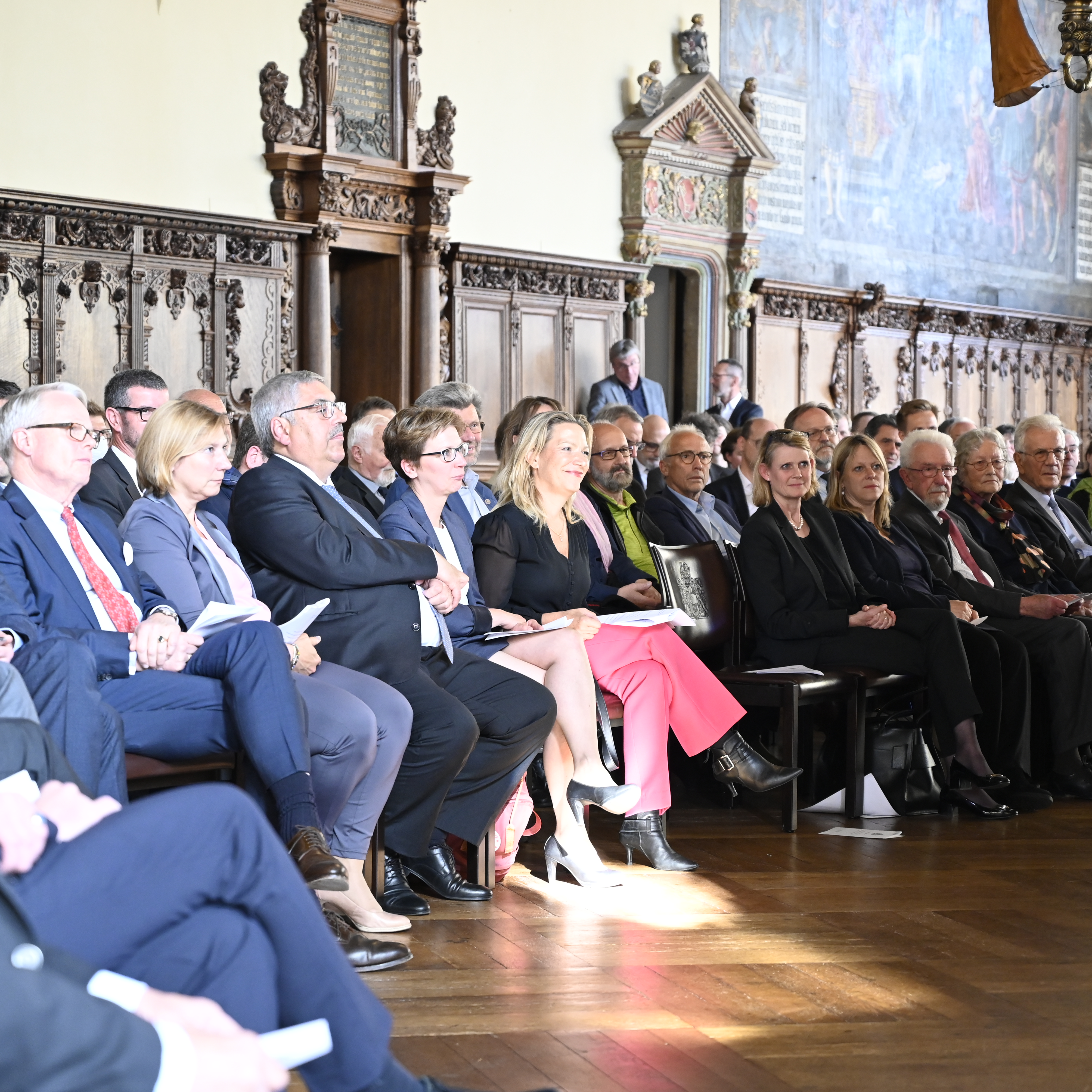 v.l.n.r.: Präses der Handelskammer Eduard Dubbers-Albrecht, Radio Bremen-Intendantin Yvette Gerner, Bremerhavens Oberbürgermeister Melf Grantz, Wissenschaftssenatorin Claudia Schilling, AWI-Direktorin Antje Boetius, Judith Pirscher (Staatssekretärin im Bundesministerium für Bildung und Forschung), Bürgermeisterin Maike Schaefer, Prof. Dr. Gotthilf Hempel (Gründungsdirektor vom AWI) Foto: Senatspressestelle