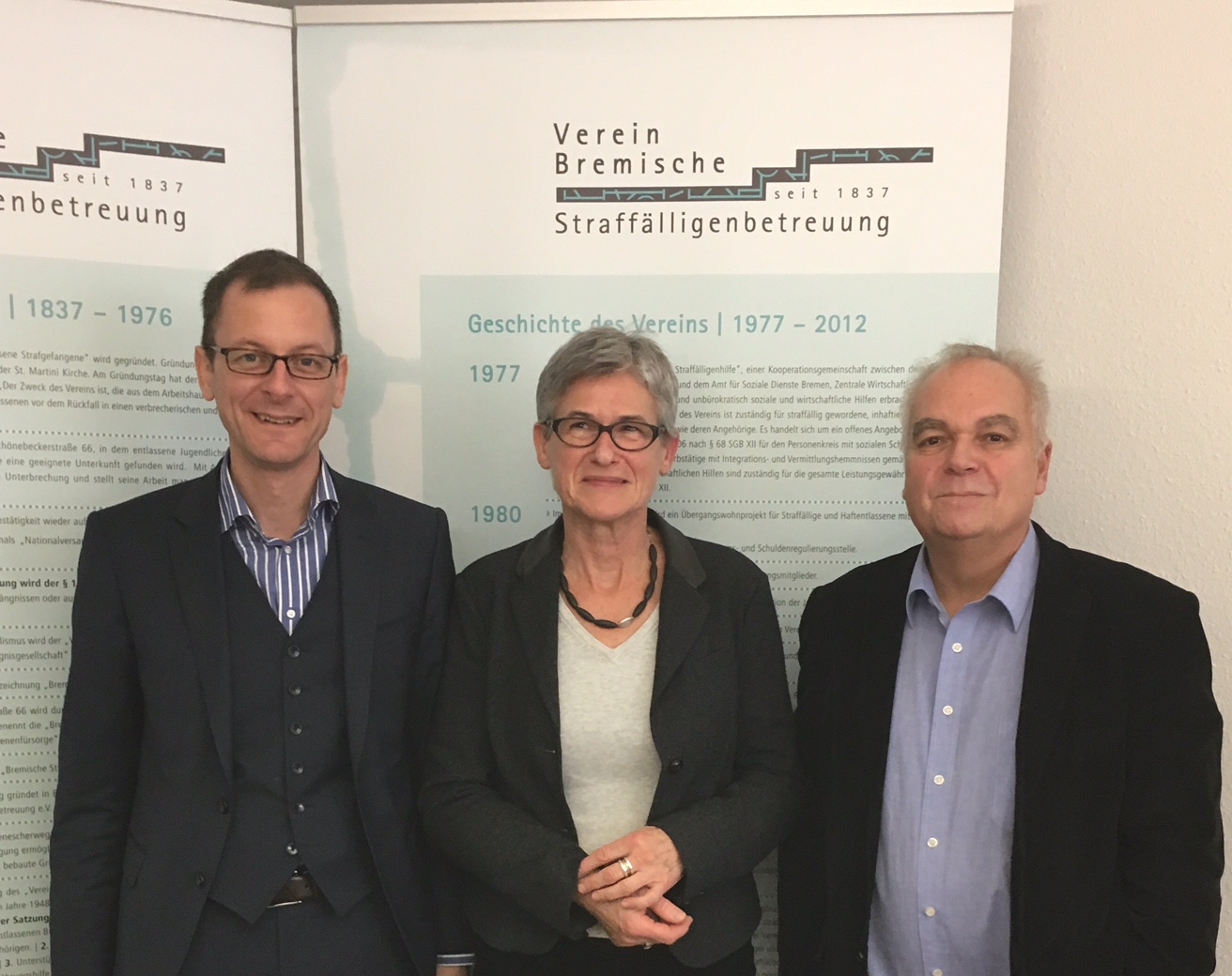 (v.l.) Senator Martin Günthner, Elke Bahl, Geschäftsführerin des Vereins der Bremischen Straffälligenbetreuung sowie Vereinsvorsitzender Wolfgang Grotheer