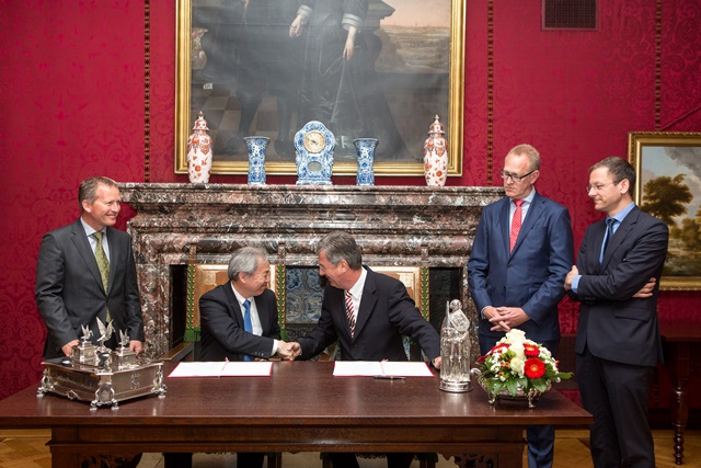 Wirtschaftssenator Martin Günthner, BLG-Chef Frank Dreeke, BLG-Geschäftsführer Michael Bünning, Masato Atsumi, President Suzuki Europe, BLG-Vorstand Michael Blach (v.re.)