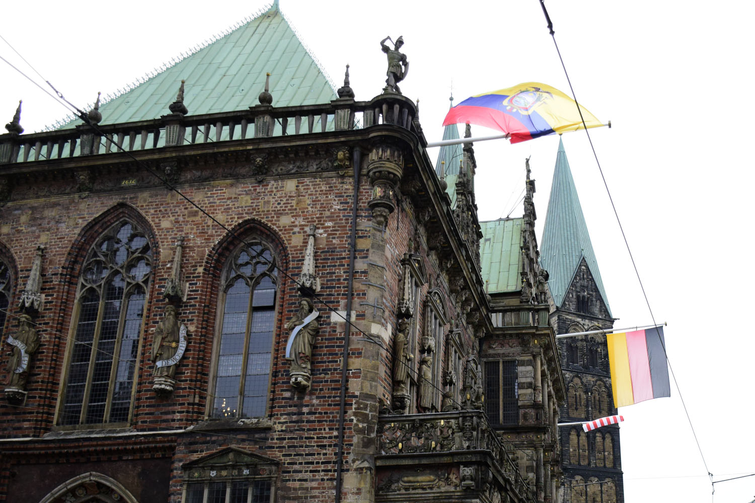 Zum Besuch des Botschafters weht die Flagge Ecuadors am Bremer Rathaus