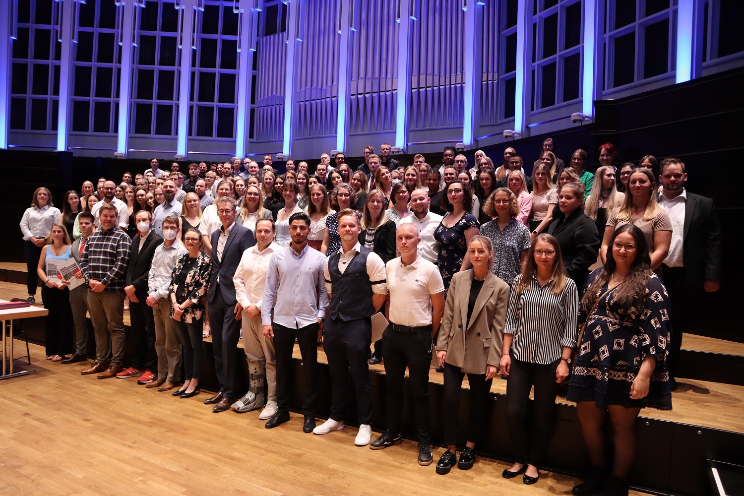 Dr. Martin Hagen hat den frisch gebackenen 55 Verwaltungsfachangestellten, 20 Justizfachangestellten und 46 Absolventinnen und Absolventen des Dualen Studiengangs Public Administration zu ihrer bestandenen Prüfung gratuliert und ihnen die Prüfungszeugnisse und Ernennungsurkunden überreicht. Die meisten der Absolventinnen und Absolventen werden unmittelbar im Anschluss an die Ausbildung bzw. an das Studium in das Beamtenverhältnis auf Probe übernommen.