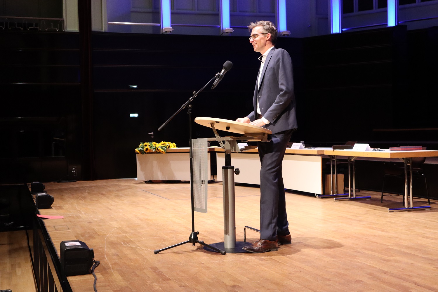 31.08.2022In festlichem Rahmen hat Finanzstaatsrat Dr. Martin Hagen die neuen Mitarbeiter und Mitarbeiterinnen der Stadt und des Landes Bremen in der Bremer Glocke begrüßt. Er betonte dabei, wie wichtig die neuen Kräfte für die Bremische Verwaltung sind: "Ich freue mich, in den Reihen unserer Verwaltung gut ausgebildete und motivierte Mitarbeiterinnen und Mitarbeiter wie Sie aufzunehmen. Nur so kann der öffentliche Dienst als kompetenter, serviceorientierter Dienstleister für alle Bürgerinnen und Bürger funktionieren".