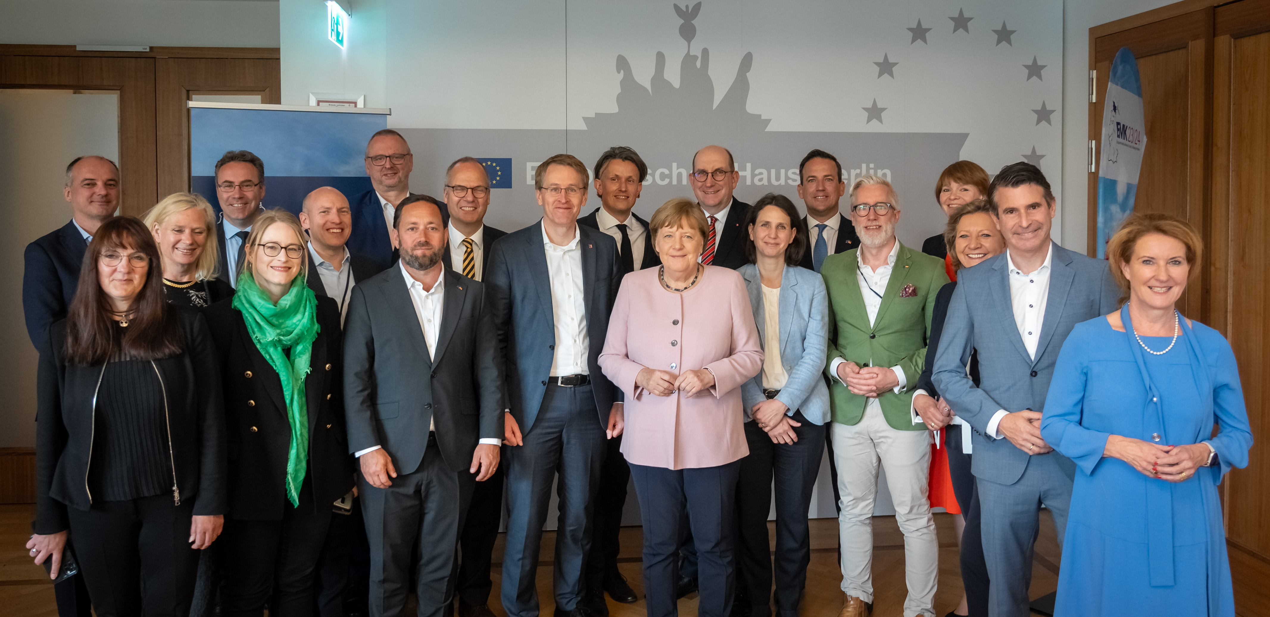 Drei Tage nach der Europawahl am 9. Juni 2024 und nur wenige Wochen vor der Tagung des Europäischen Rates, bei der die Mitgliedstaaten ihre strategische Agenda für die kommende Legislaturperiode festlegen wollen, war das Thema "Zukunft der Europäischen Union" als inhaltlicher Schwerpunkt gesetzt. Mit der Bundeskanzlerin a. D. Dr. Angela Merkel und im Beisein des schleswig-holsteinischen Ministerpräsidenten Daniel Günther tauschten sich die Mitglieder der Europaministerkonferenz (EMK) zur grundsätzlichen Ausgestaltung und den politischen Prioritäten der EU aus.