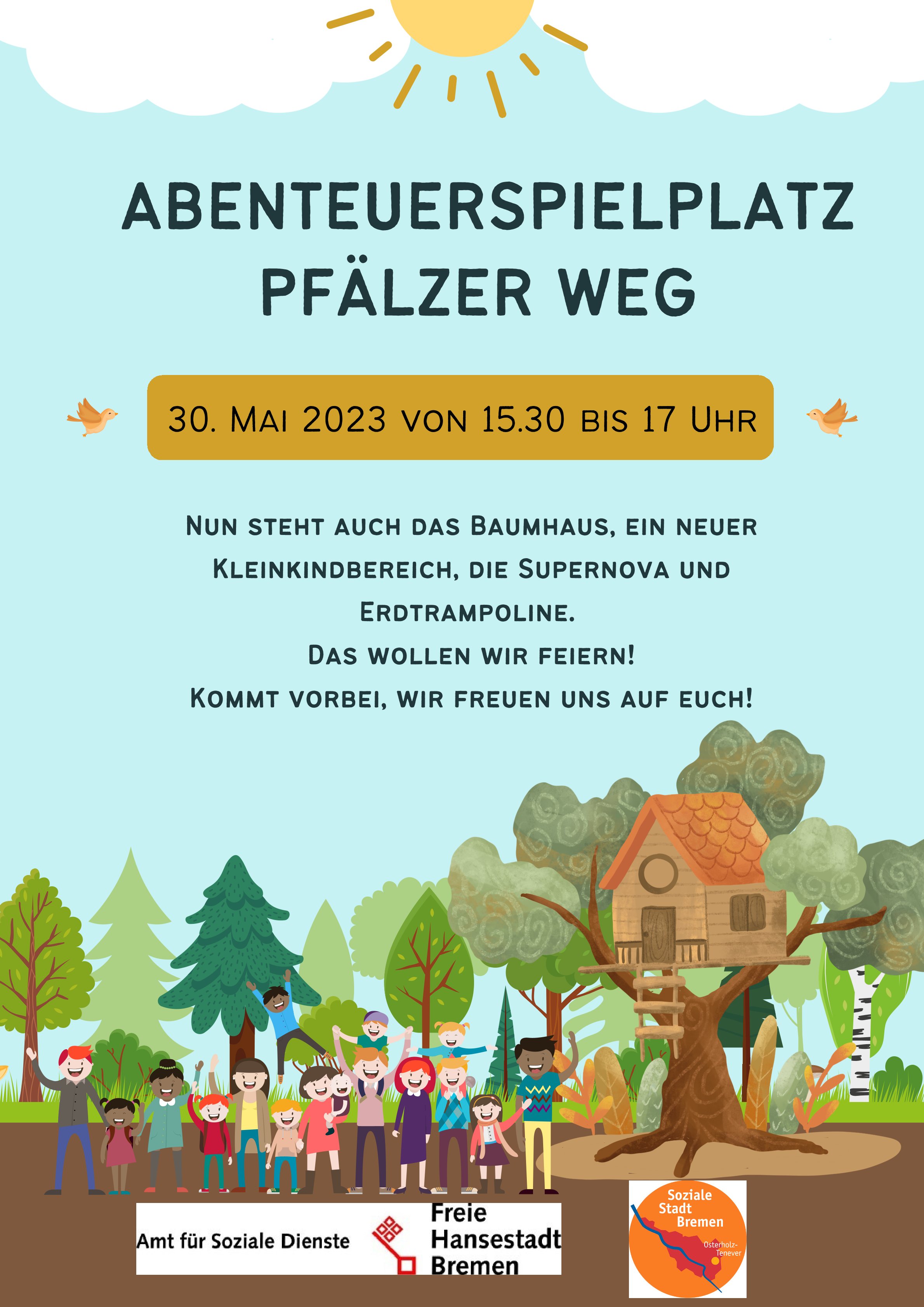 23.05.2023Der Abenteuerspielplatz am Pfälzer Weg in Osterholz Tenever ist mit zusätzlichen Spielgeräten aufgewertet worden und soll am Dienstag, den 30. Mai 2023, von 15.30 bis 17 Uhr mit einem kleinen Fest eingeweiht werden.