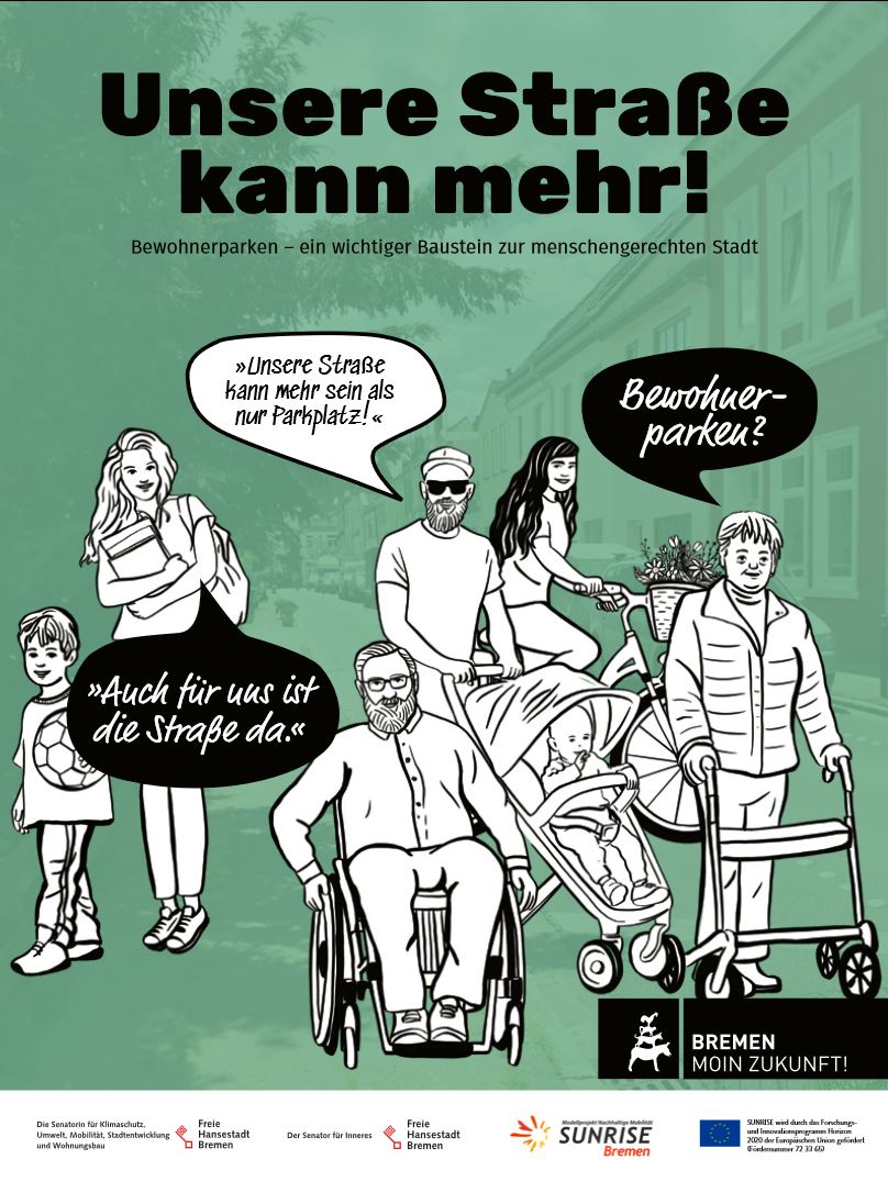 "Es wird nun ein klarer Auftrag und Wunsch des Beirates östliche Vorstadt umgesetzt", stellt Eilers fest. "Mit Unterstützung durch das europäische SUNRISE Projekt wurde das Konzept zum Bewohnerparken entwickelt - mit intensiver Beteiligung der Menschen, die hier leben." Im Februar 2018 hat das SUNRISE Projekt eine erste Bürgerversammlung abgehalten – ergänzt durch 12 Straßenstände und einer Online-Beteiligung. Das daraus entstandene Konzept zum Bewohnerparken wurde im September 2019 im Beirat grundsätzlich beschlossen und über Straßenbegehungen in allen Straßen des Bewohnerparkgebietes noch einmal erörtert. Im März 2020 wurde der auf dieser Basis entwickelte detaillierte Betriebsplan im Beirat einstimmig beschlossen. Zur Umsetzung wurden die Anwohner im August 2020 dann mit einer 28-seitigen Hauswurfsendung unter dem Motto „Unsere Straße kann mehr“ informiert – auch darüber wie und wo Bewohnerparkausweise zu erhalten sind.