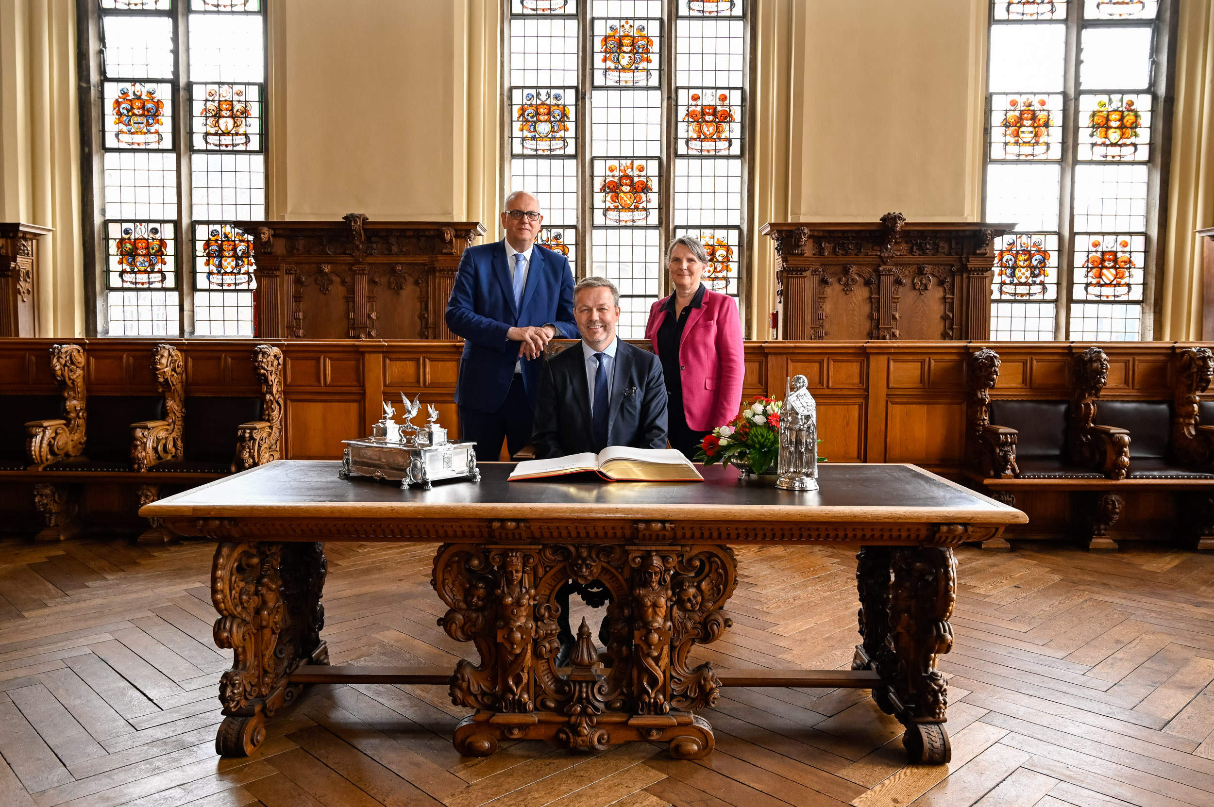 Am heutigen Donnerstag (10. April 2025) hat Bürgermeister Andreas Bovenschulte den Botschafter der Republik Island, Audunn Atlason, im Bremer Rathaus empfangen. Begleitet wurde er unter anderem von Honorarkonsulin Petra Neykov. Im Rahmen des Besuchs trug sich der Botschafter zunächst in das Goldene Buch der Freien Hansestadt Bremen ein. Anschließend fand ein intensiver Austausch über die langjährigen Beziehungen zwischen Deutschland und Island statt.