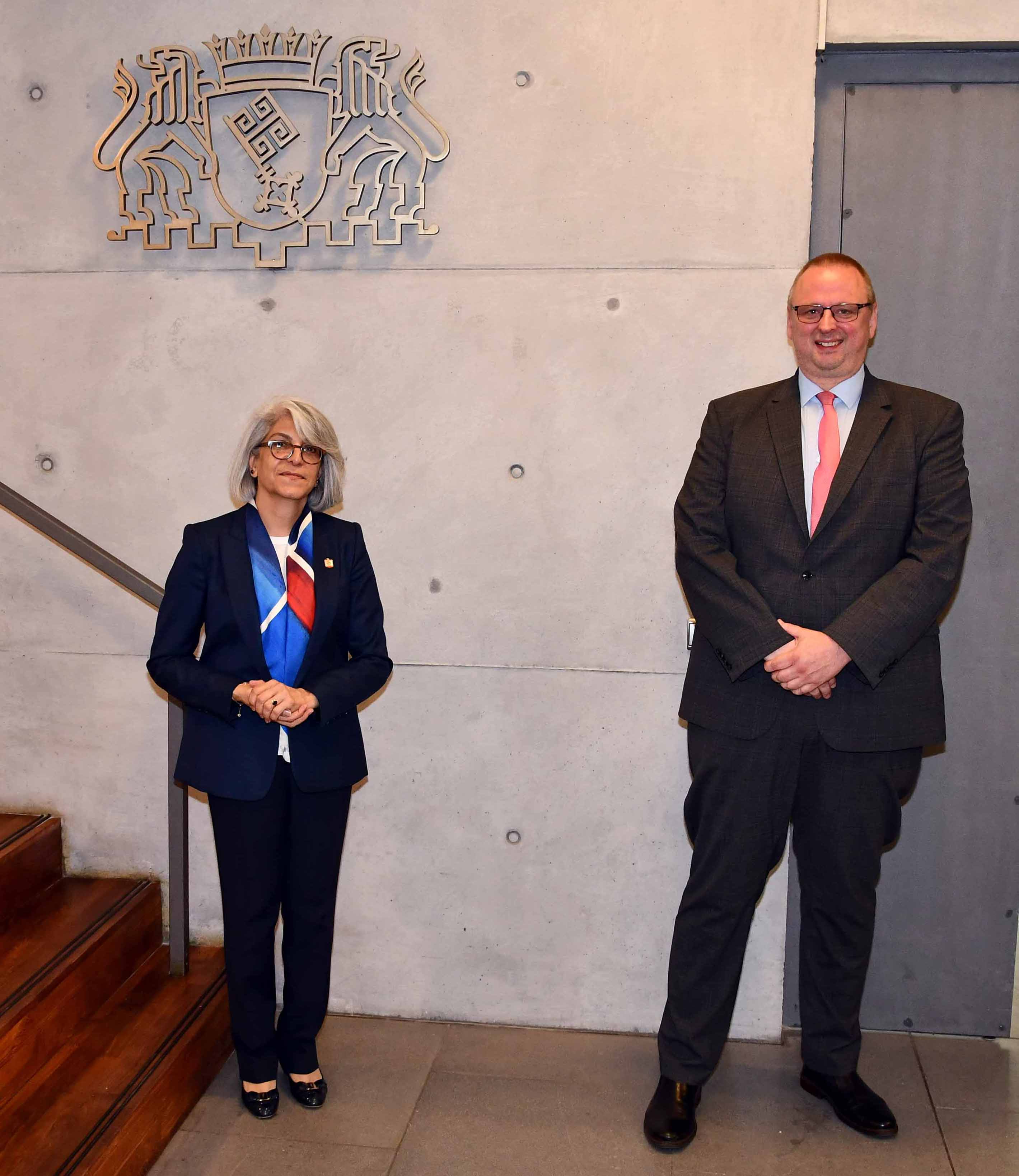 Der Bevollmächtigte der Freien Hansestadt Bremen beim Bund, Staatsrat Dr. Olaf Joachim, empfing am heutigen Mittwoch, 19. August 2020, die Botschafterin der Vereinigten Arabischen Emirate, Hafsa Abdulla Mohamed Sharif Alulama, in der "Bremer Botschaft" in Berlin.
