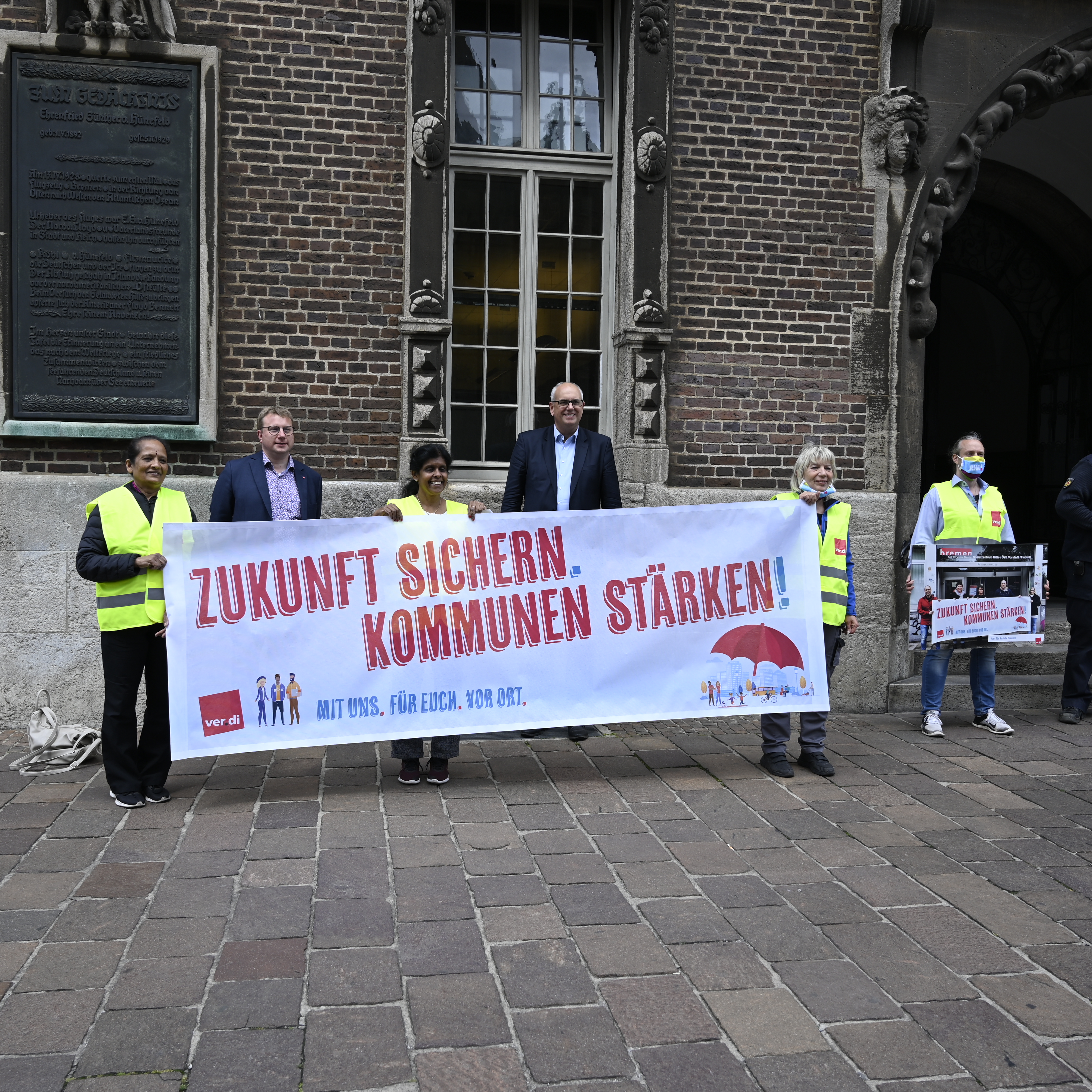 Verdi-Aktion am Tag der Daseinsvorsorge vor dem Rathaus