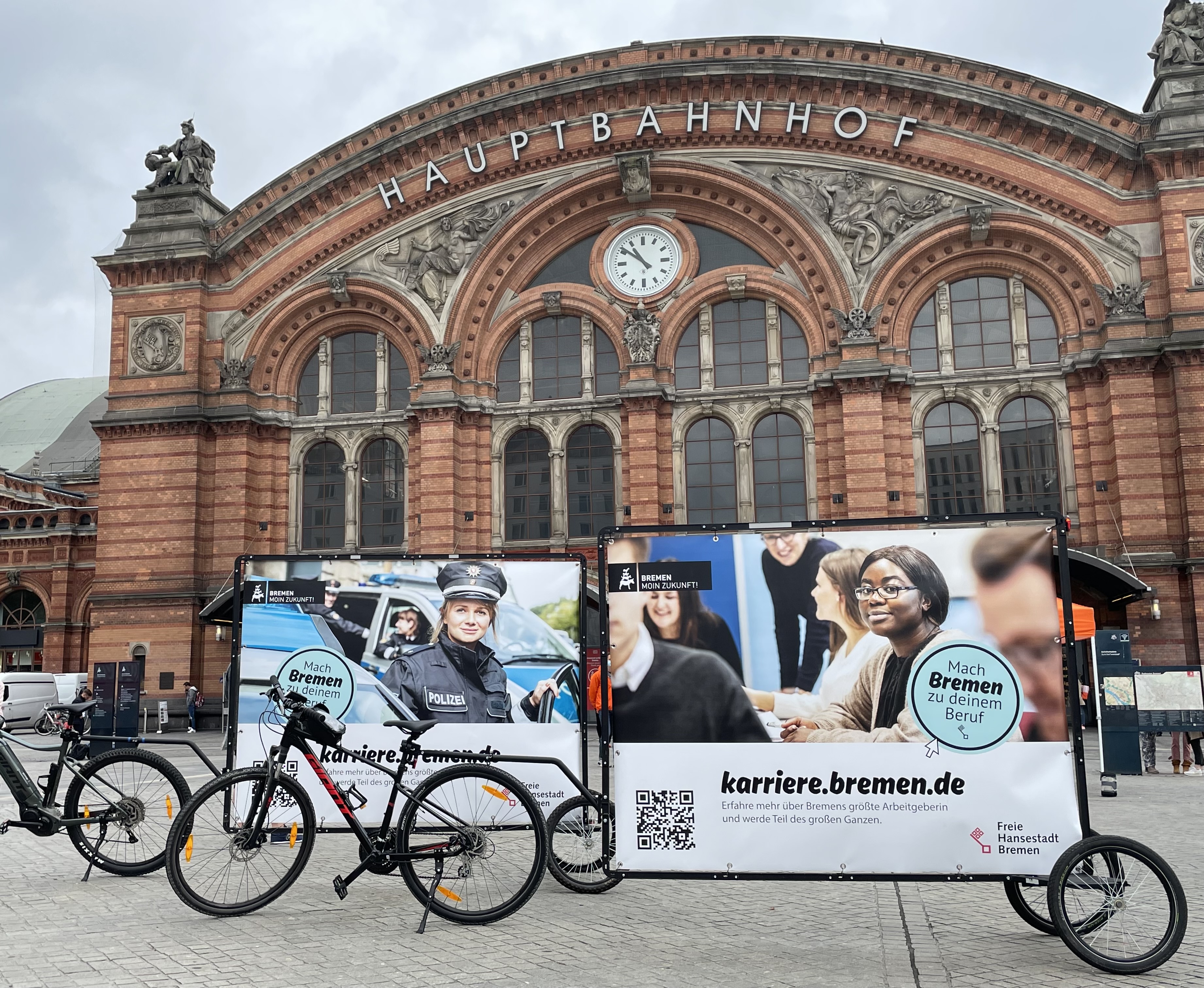 Die Freie Hansestadt Bremen wirbt mit Werbefahrädern um Fachkräfte