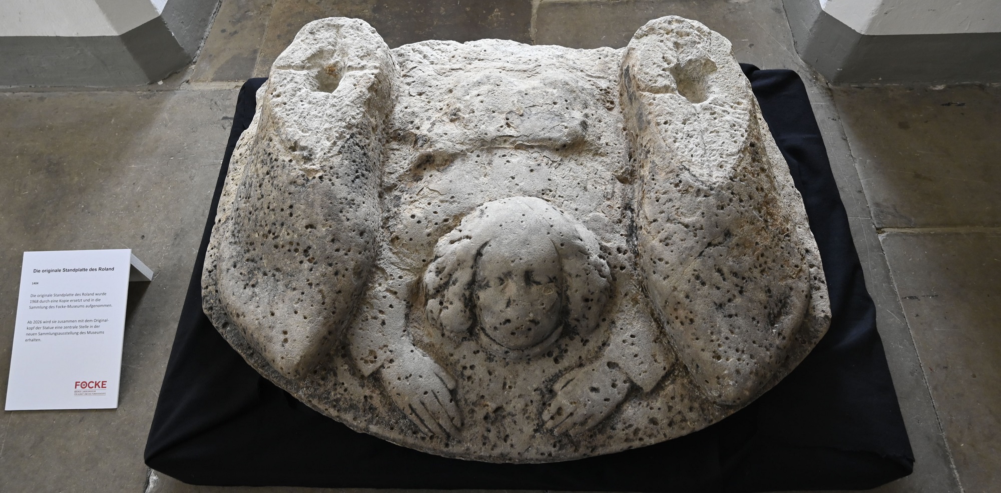Foto-Download (jpg, 738.6 KB) In der Ausstellung zu sehen: Die originale Standplatte des Roland aus dem Jahr 1404.