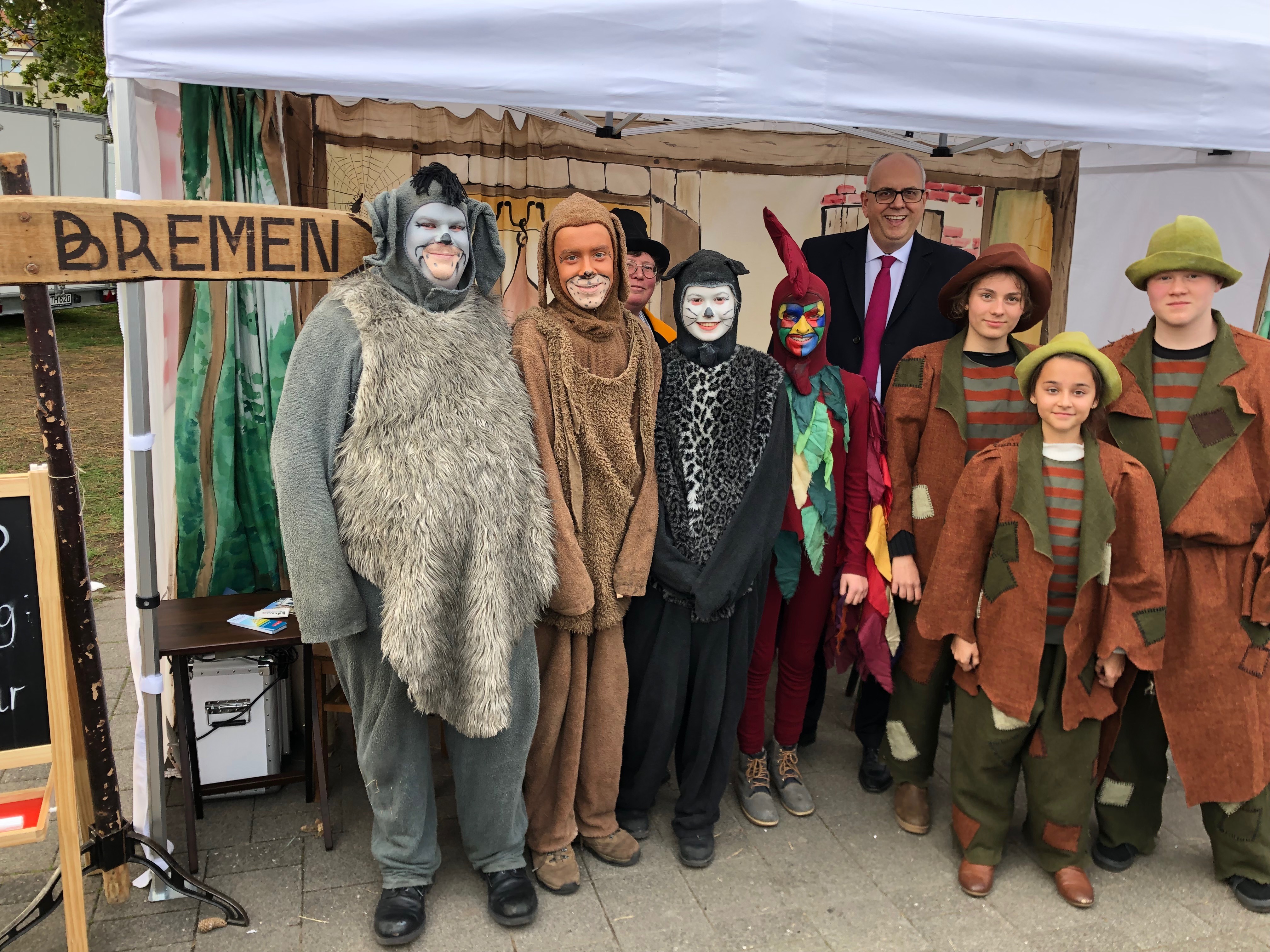 Unter dem Motto ‚Innovativ aus Tradition‘ zeigen die Kooperationspartner, welch leistungsstarker Standort die Freie Hansestadt Bremen ist. Zum Ruhm gehört ohne Zweifel auch das Märchen der Gebrüder Grimm. „Mit den Bremer Stadtmusikanten haben wir ein weltweit einmaliges Alleinstellungsmerkmal“, betont Bovenschulte, „und die Erstveröffentlichung vor 200 Jahren haben wir diesen Sommer gefeiert. Dass Mut verbindet, haben die vier Tiere damals in der Erzählung gezeigt. Im wahren Leben waren es unsere Brüder und Schwestern in der damaligen DDR und ihre Form des Widerstandes vor dreißig Jahren.“