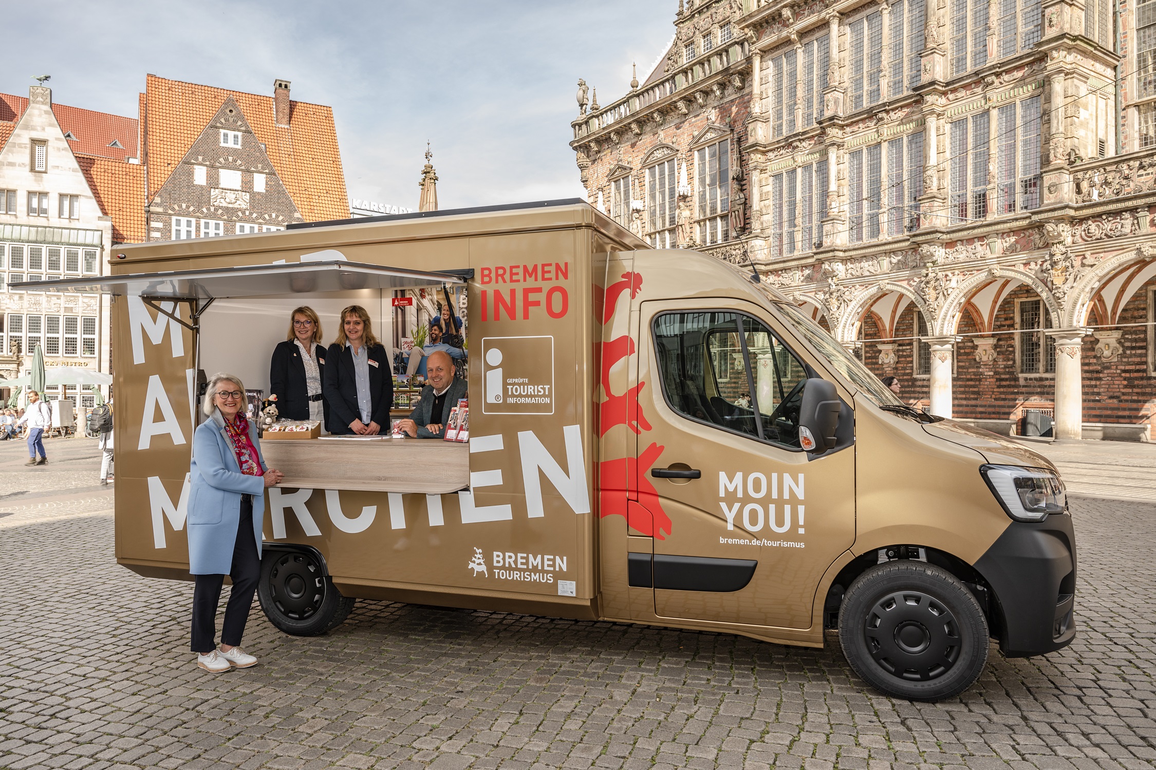 Der aufwändig und auffällig gestaltete rot-goldene Renault Transporter geht zukünftig dorthin, wo die potentiellen Gäste sind. Zunächst wird er Anfang Oktober Teil der Bremen-Präsentation auf dem Tag der Deutschen Einheit in Hamburg sein, aber auch Einsätze in Stadtteilen, vor großen Kongressen und Events oder an der Nordseeküste sind denkbar.