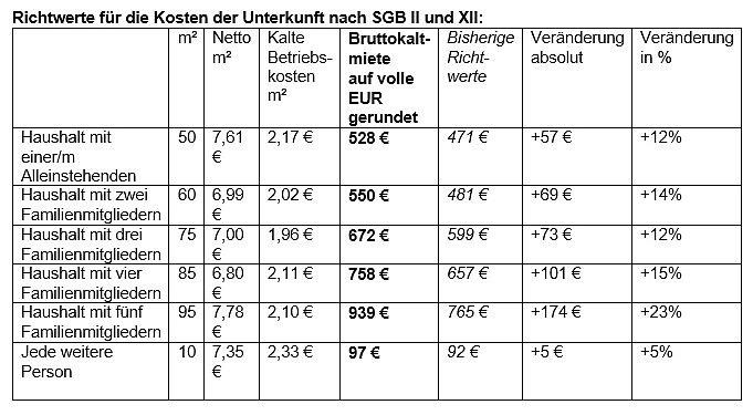 Die neuen Richtwerte gelten rückwirkend ab 1. März 2020, das Jobcenter und das Amt für Soziale Dienste passen die Werte in den Einzelfallakten von Amts wegen auch für zurückliegende Zeiträume eigenständig an, ein eigener Antrag ist in der Regel nicht erforderlich. Die nächste Anpassung der Richtwerte ist zum 1. März 2022 vorgesehen.