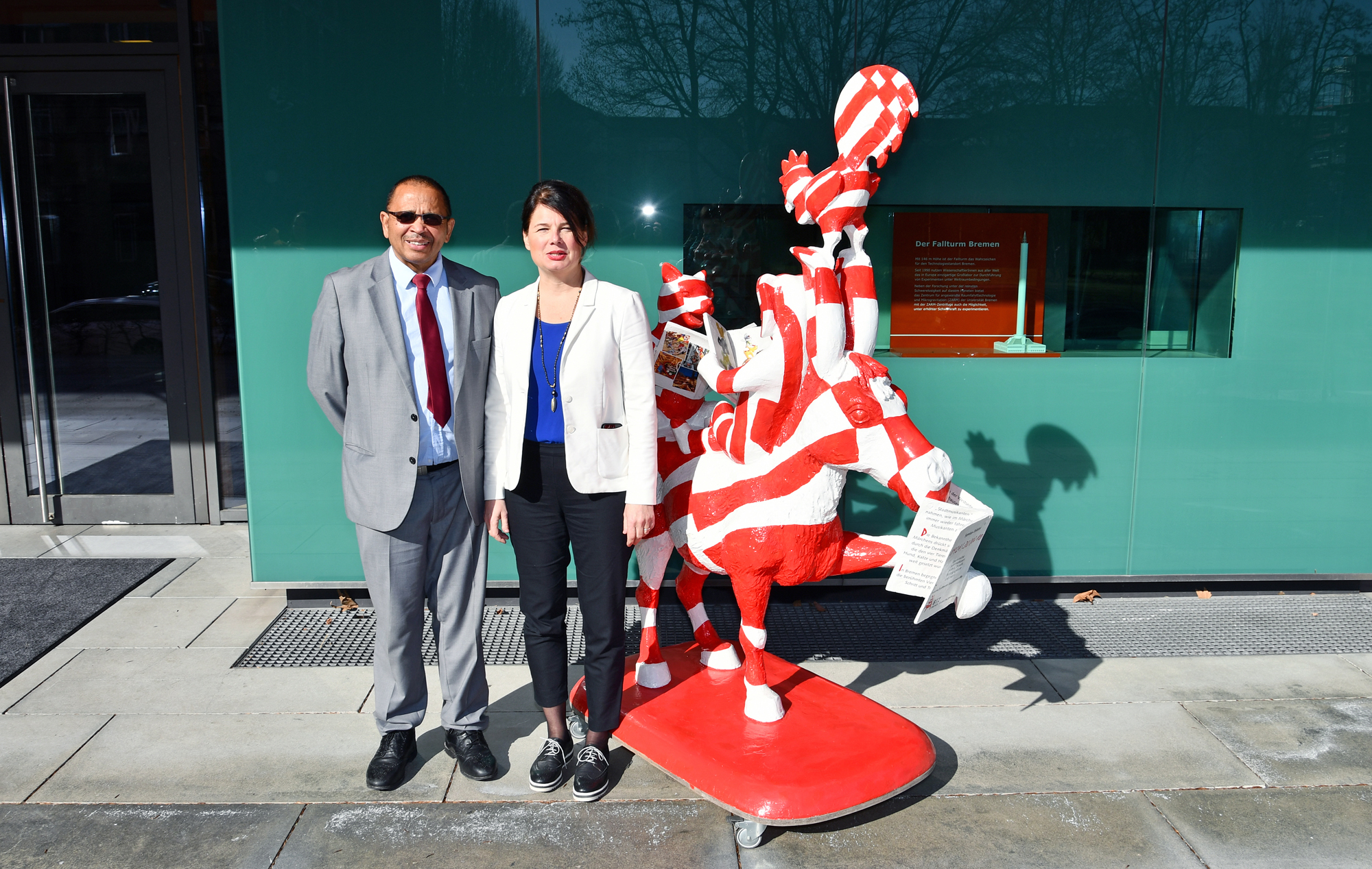 Staatsrätin Ulrike Hiller mit Botschafter Andreas Guibeb