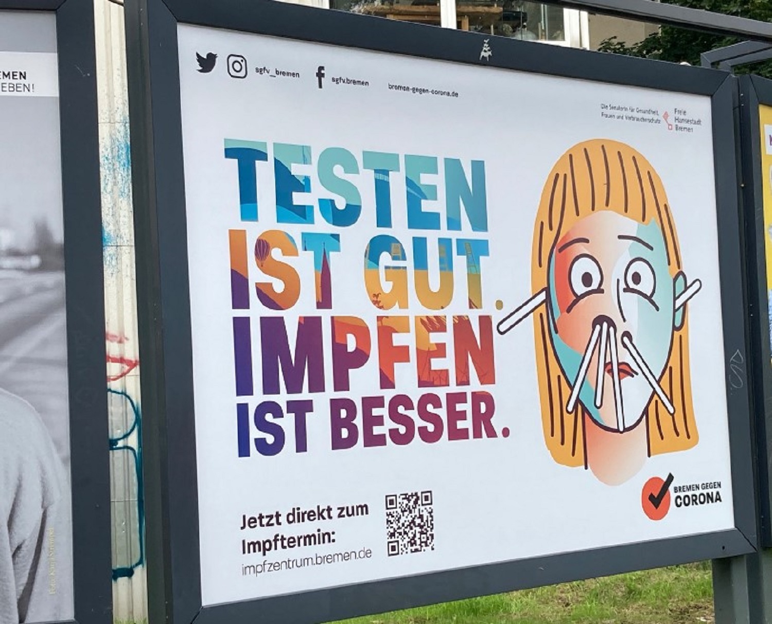 Neben den Bierdeckeln machen weitere Werbemittel wie City Light Plakate, City Cards, Flyer, Poster und Social Media Posts auf die Kampagne aufmerksam. Mit vier verschiedenen Motiven werden besonders jüngere Menschen angesprochen mit dem Ziel, ihnen den Zugang zum Impfen einfach und unkompliziert zu ermöglichen.