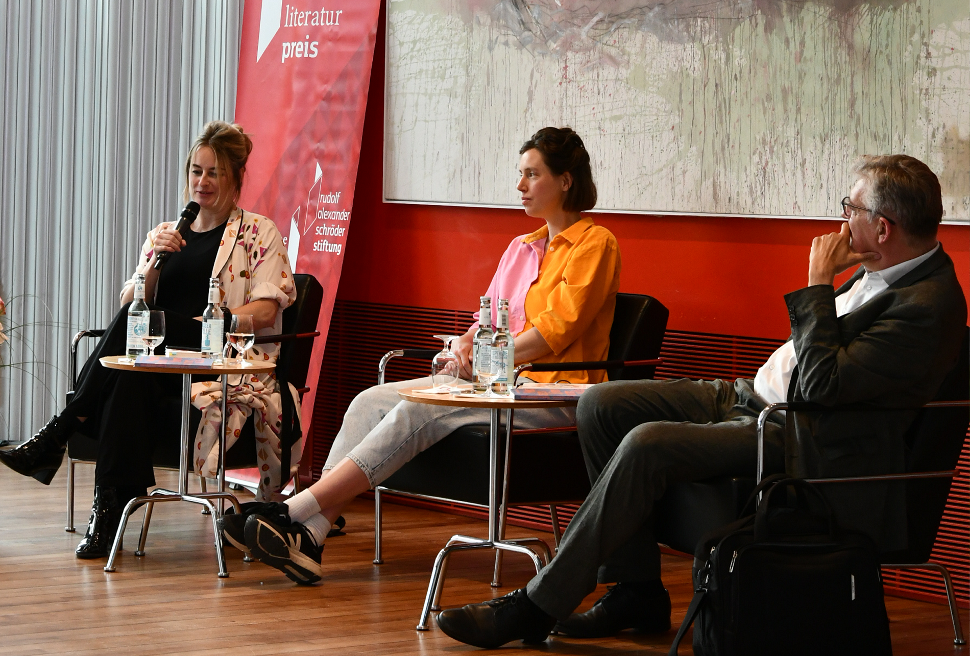 Nach der Lesung fand eine angeregte Diskussion mit den Preisträgerinnen statt, bei der das Publikum die Möglichkeit hatte, Fragen zu stellen und mehr über die Hintergründe und Inspirationen der Werke zu erfahren. Durch den Abend führte Dr. Lothar Müller, Vorstand der Rudolf-Alexander-Schröder-Stiftung, der mit seiner Moderation den Gästen einen tiefen Einblick in die Arbeit der Autorinnen vermittelte.