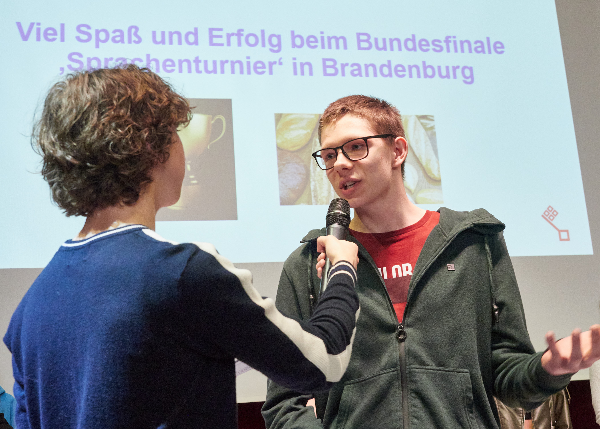 Neben der Übergabe von Urkunden und Preisen wurden bei der von Schüler Luis Ruminski aus dem 10. Jahrgang moderierten Veranstaltung Ausschnitte aus den erfolgreichen Videoarbeiten, Theaterstücken und Podcasts gezeigt, die auf Englisch, Französisch, Spanisch, Latein und zum ersten Mal auch auf Türkisch erstellt wurden.