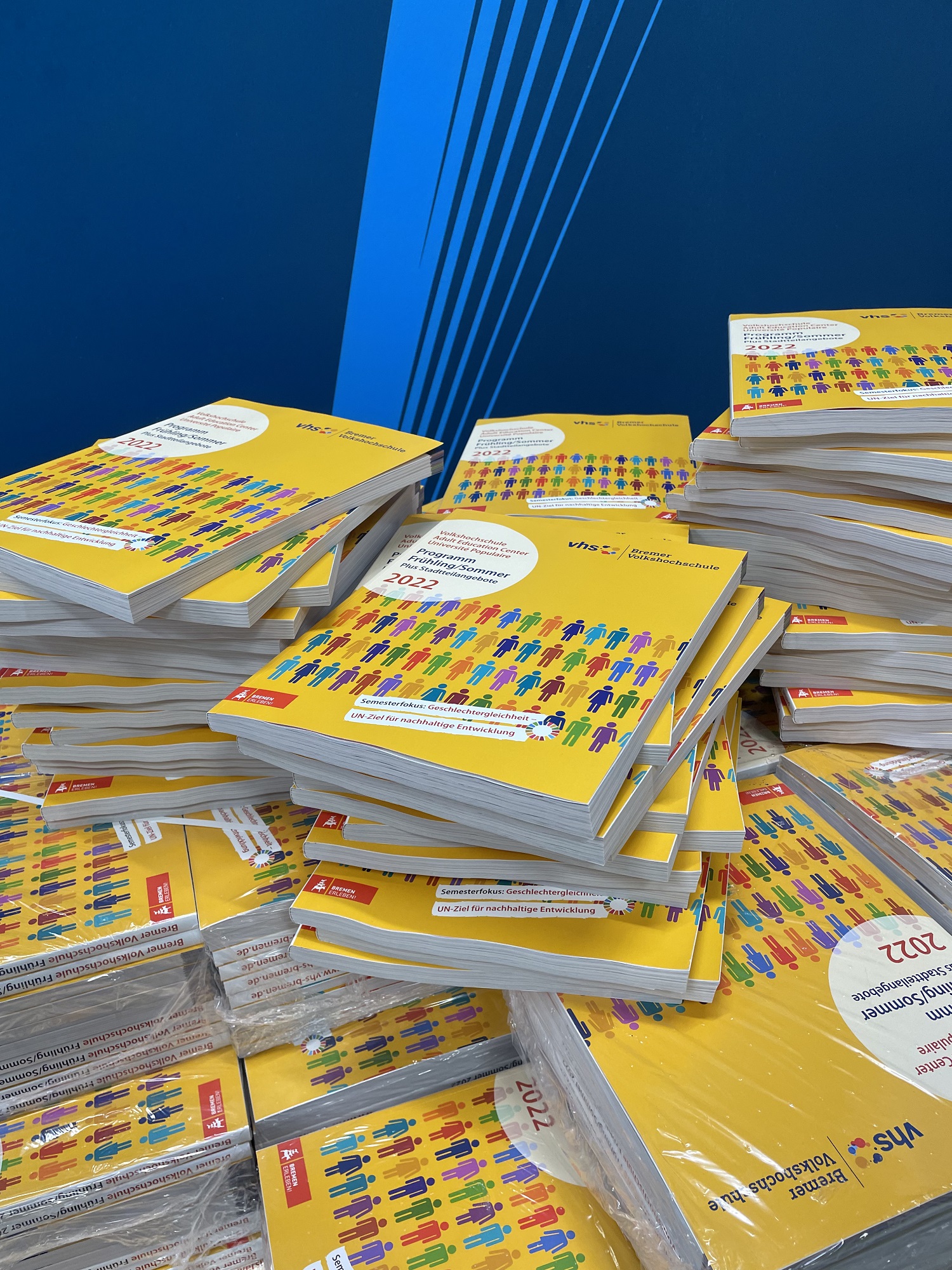 Das Programmheft der Bremer vhs für Frühling/Sommer 2022 liegt in den vhs-Geschäftsstellen sowie in vielen Buchhandlungen, Stadtbibliotheken, Sparkassenfilialen und Kultureinrichtungen kostenlos aus und steht unter www.vhs-bremen.de zum Download bereit. Neue Angebote als Ergänzung zum bestehenden Programm werden auf der Website veröffentlicht.